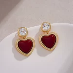 | nameOriginal | High-end wine red large peach heart earrings 2024 French retro autumn and winter new earrings Hong Kong style earrings |