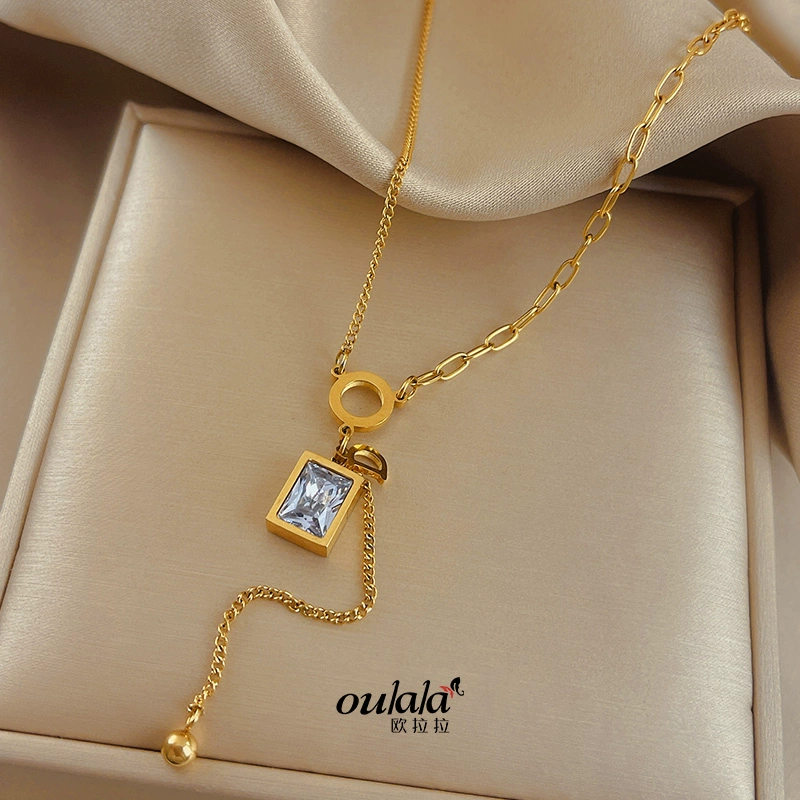 | nameOriginal | High-end zircon pendant fashion splicing necklace women's titanium steel clavicle chain non-fading letter D design jewelry |
