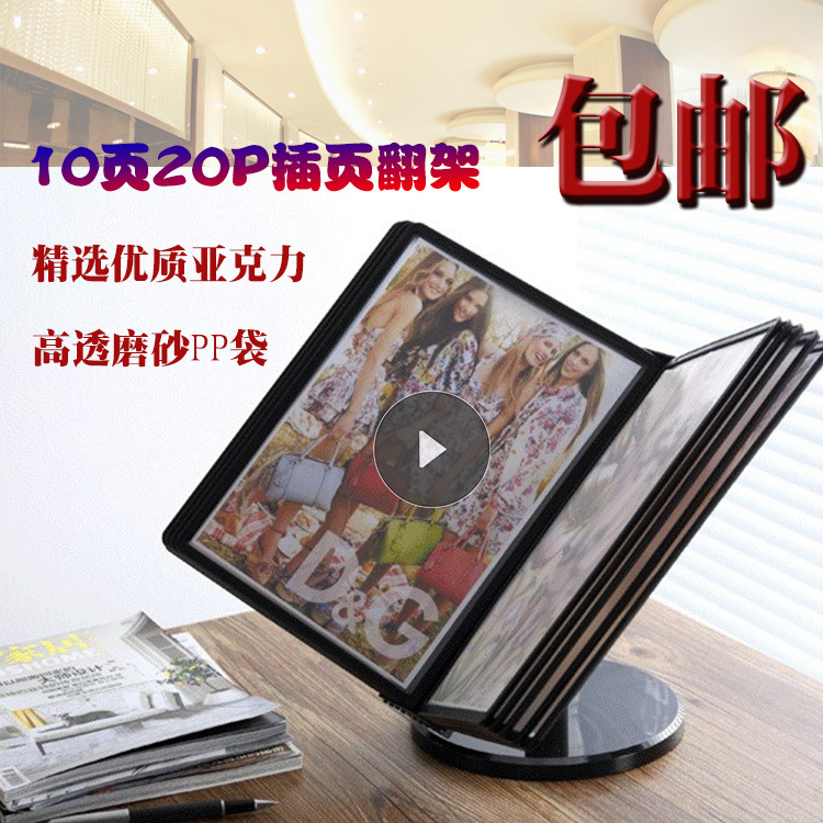 | nameOriginal | High-grade acrylic frosted pp Western-style 10-Page 20-side transparent dish rotating music stand leather A4 loose-leaf menu |