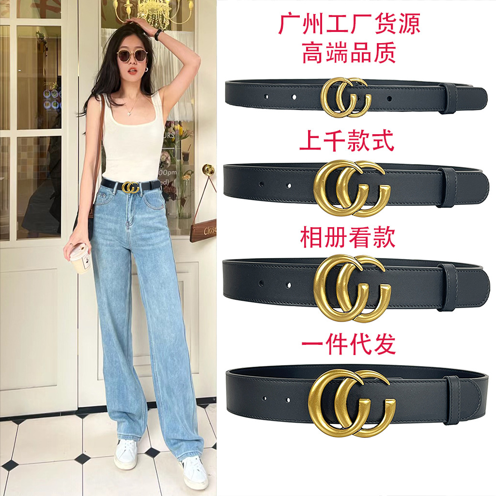 High-grade belt top layer cowhide Double G belt men and women all-match young people fashion casual ins style decorative pants belt