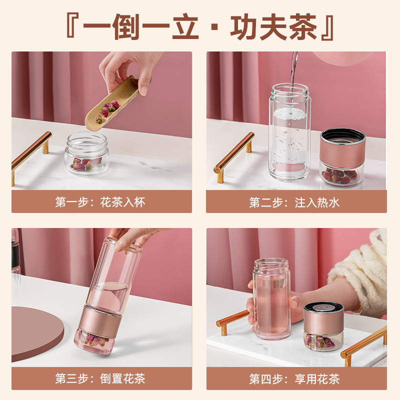 | nameOriginal | High-grade double-layer heat-insulated tea-water separation glass for men's and women's office portable tea cup with logo lettering |