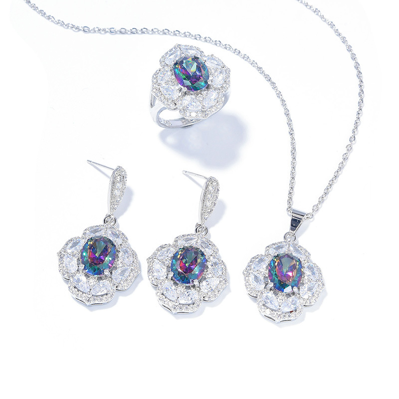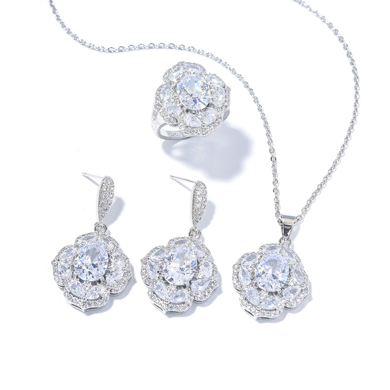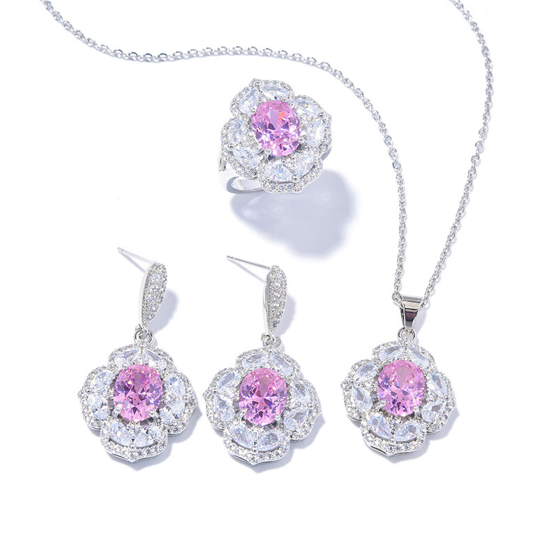 High-grade jewelry necklace suit inlaid zircon ring necklace earrings jewelry suit new color treasure three-piece set