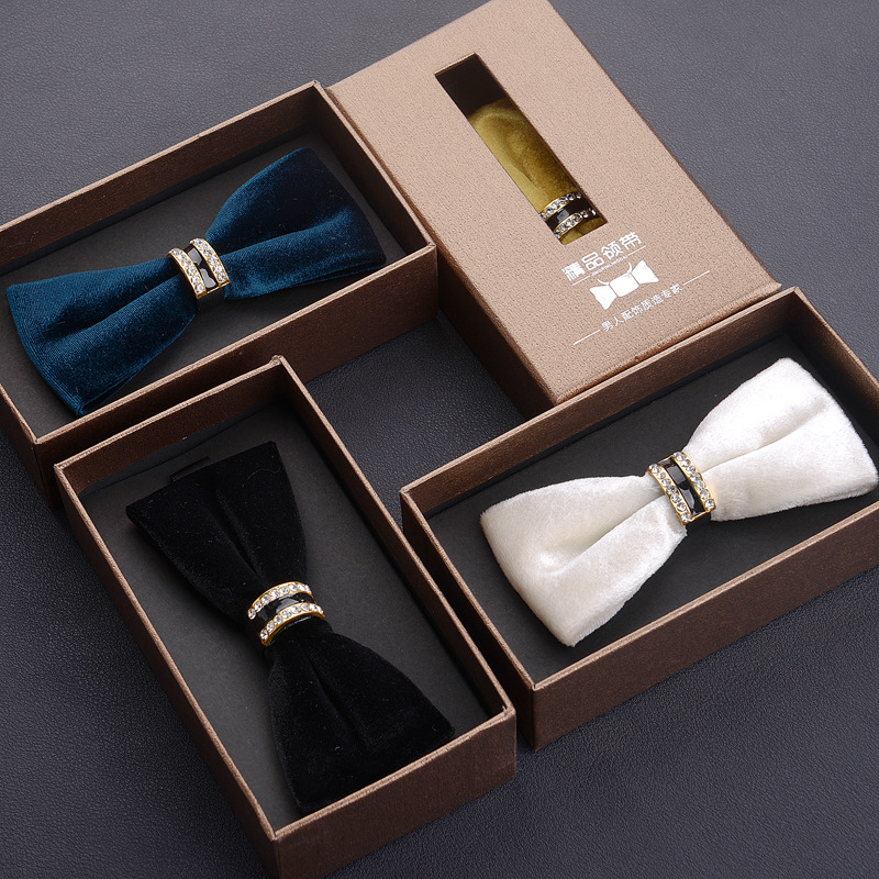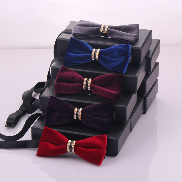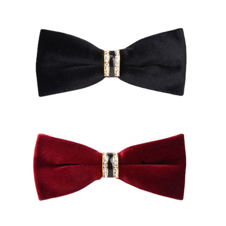High-grade Korean banquet gold velvet wedding bow diamond color fashion exquisite velvet bow tie spot wholesale