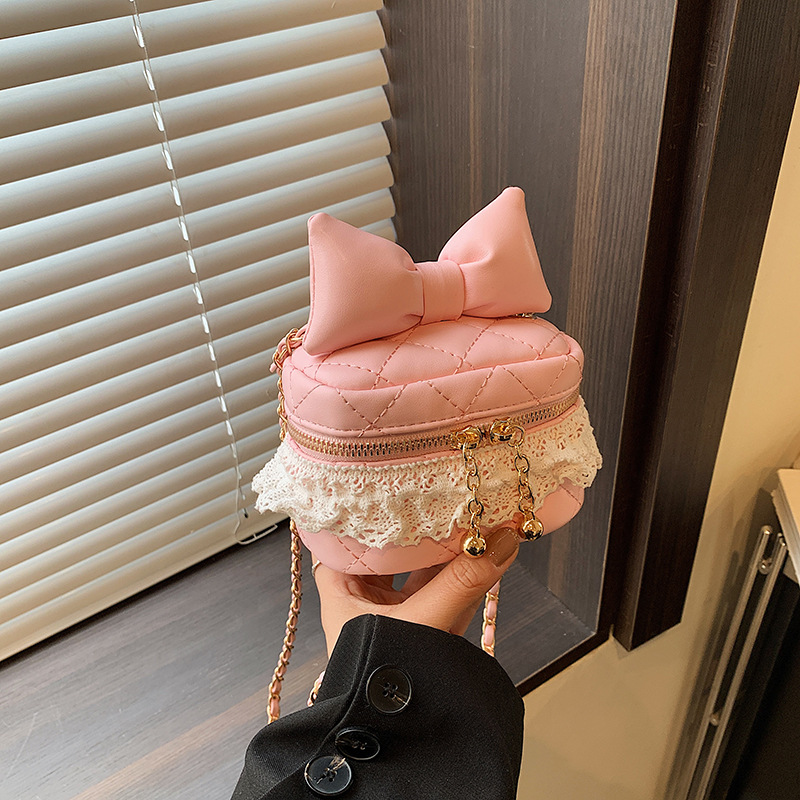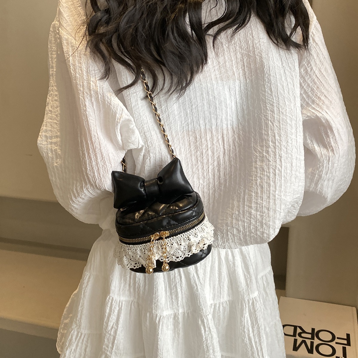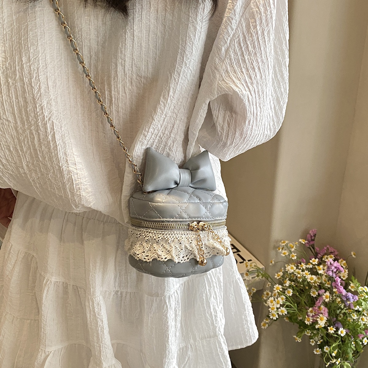 High-grade lace mini lipstick bag for women 2024 new fashion bow rhombus chain shoulder messenger bag