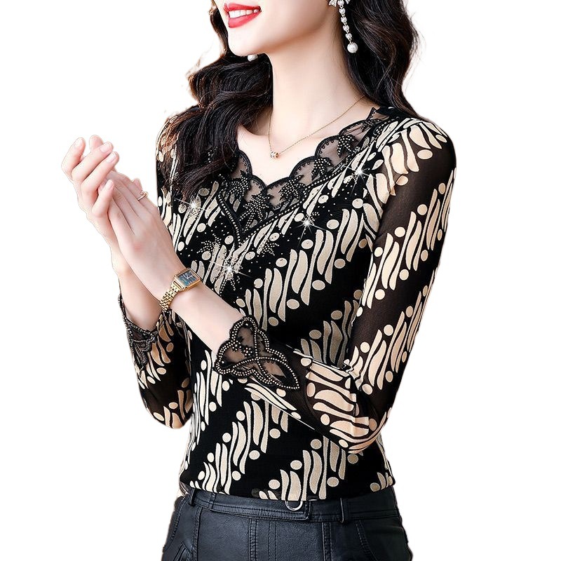 | nameOriginal | High-grade mesh base shirt 2022 autumn women 40 to 50 years old feminine top foreign-style outer wear design feeling small shirt |