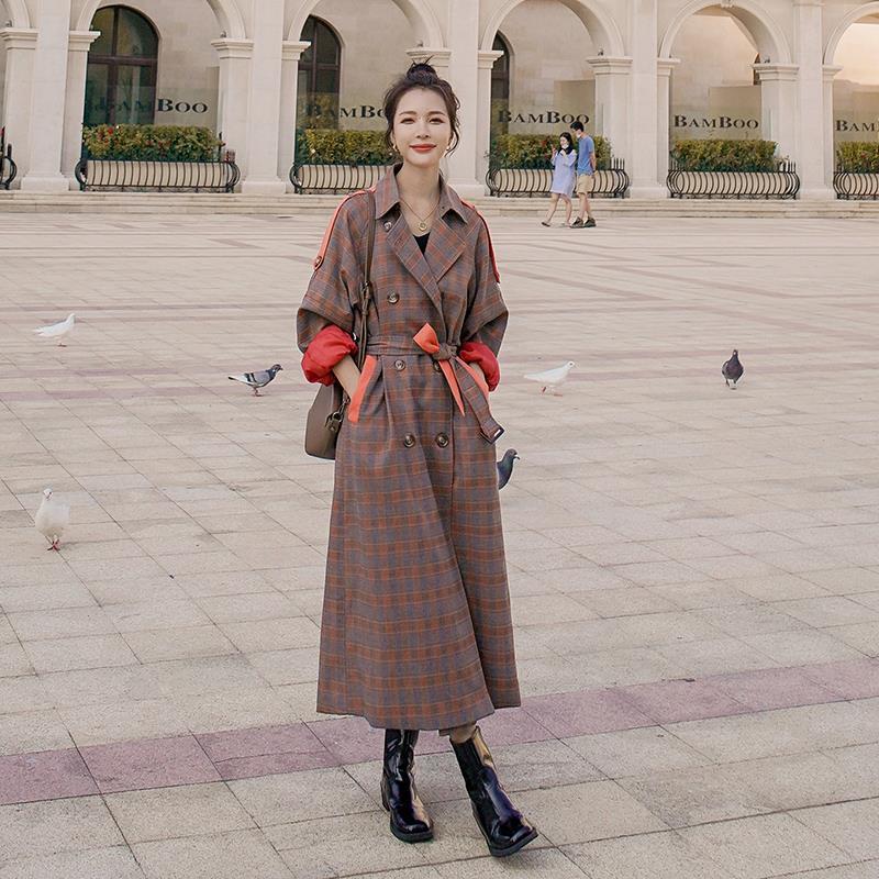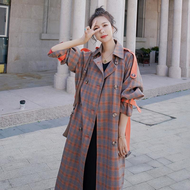 | nameOriginal | High-grade Plaid contrast color trench coat for women 2024 Spring and Autumn New Korean style loose temperament British style coat |