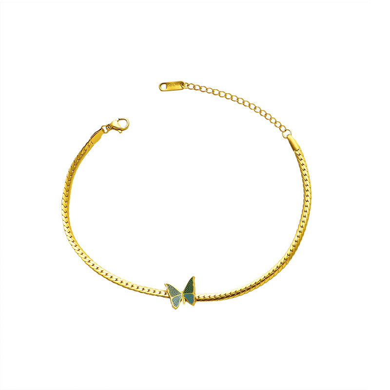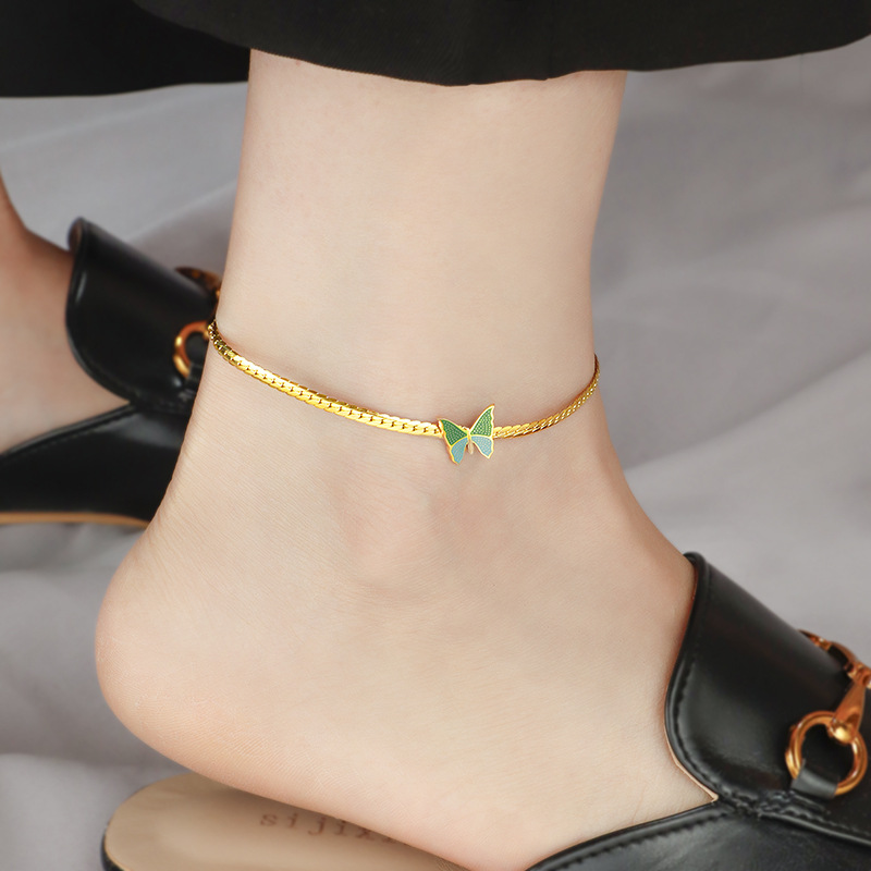 | nameOriginal | High-grade retro green butterfly anklet women's titanium steel fashion personality design titanium steel plated 18K gold light luxury foot chain gift |