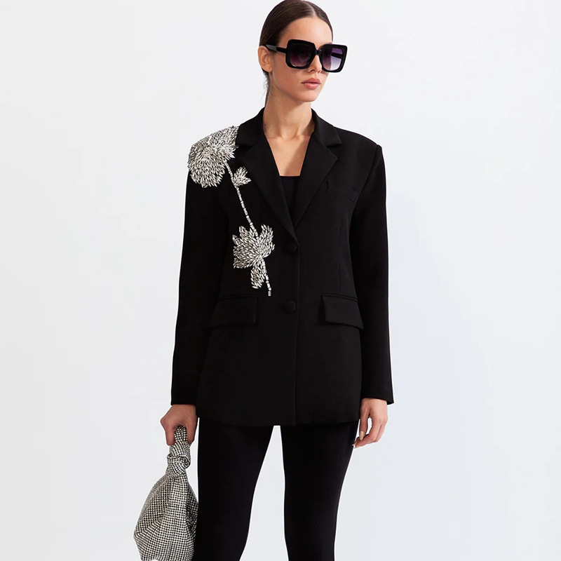 | nameOriginal | High-grade retro small-style 2024 summer new lapel long sleeve rhinestone stitching flower design small suit jacket |