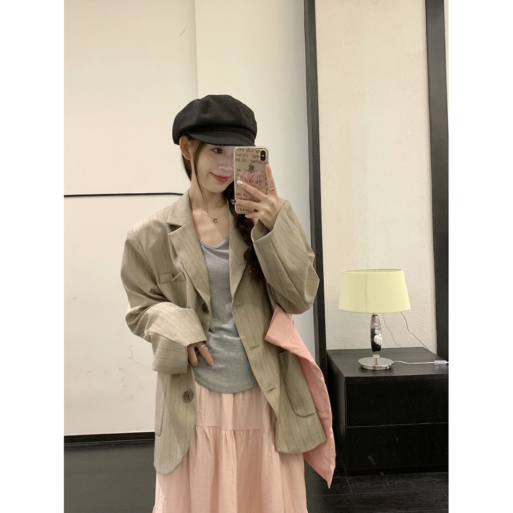 | nameOriginal | High-grade suit Women's Early Spring Elegant Striped Suit Jacket Long-sleeved T-shirt High Waist Skirt Fashion Three-piece Set |