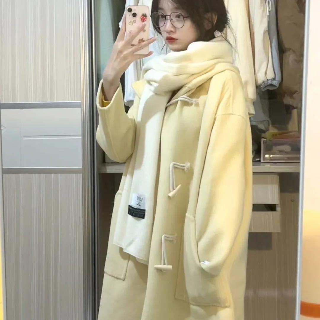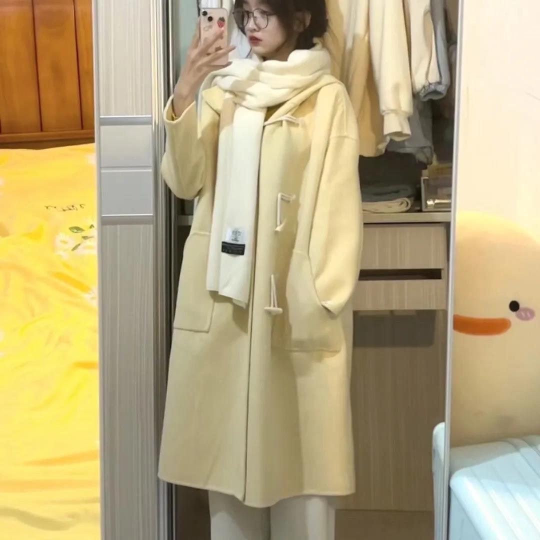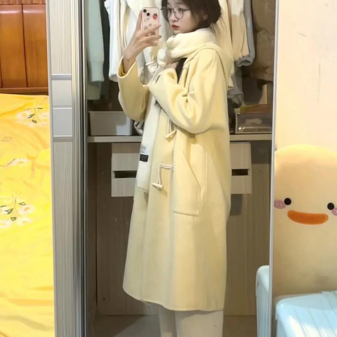 | nameOriginal | High-grade yellow woolen coat Women's Mid-length 2024 spring and autumn hooded small horn buckle woolen coat |