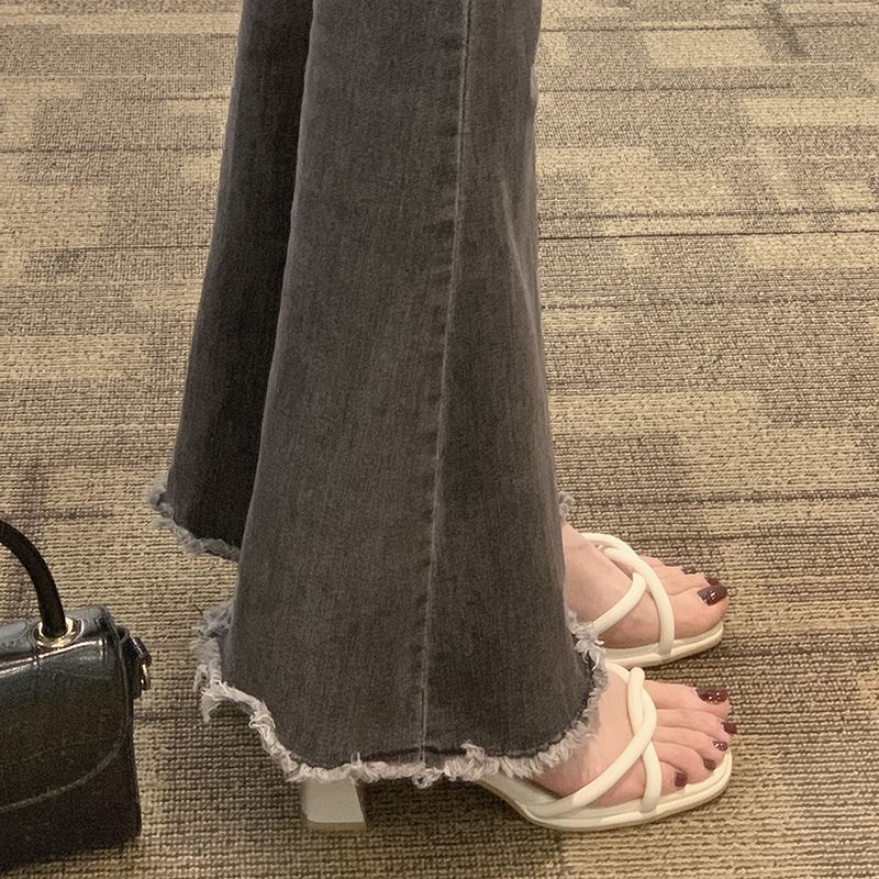 High Heels Sandals Women’s 2024 New Summer Thick Heel Fashionable One-word Belt French Matching Skirt Mid-heel Elegant Square Heel