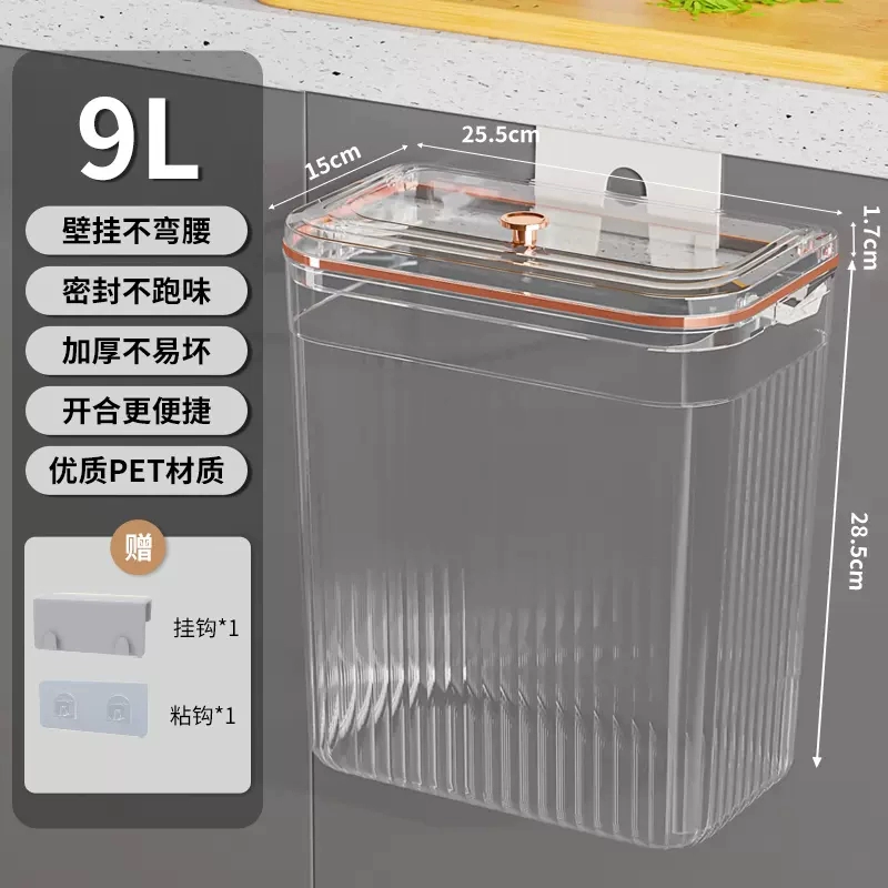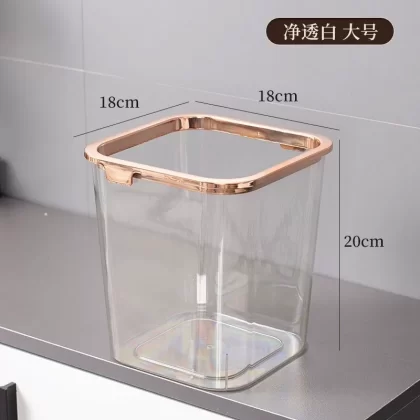 | nameOriginal | High-looking transparent trash can between kitchen and bathroom |