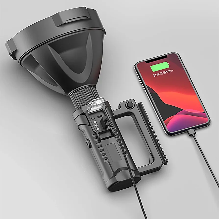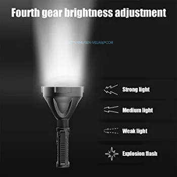 This product is a versatile flashlight that comes with three different lighting modes – strong, medium, and weak – as well as a fast flashing mode. It can be easily charged via USB and has a display function to show the charging status. The flashlight also has an input and output function, making it useful for charging other devices.