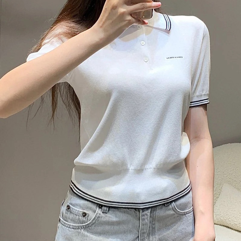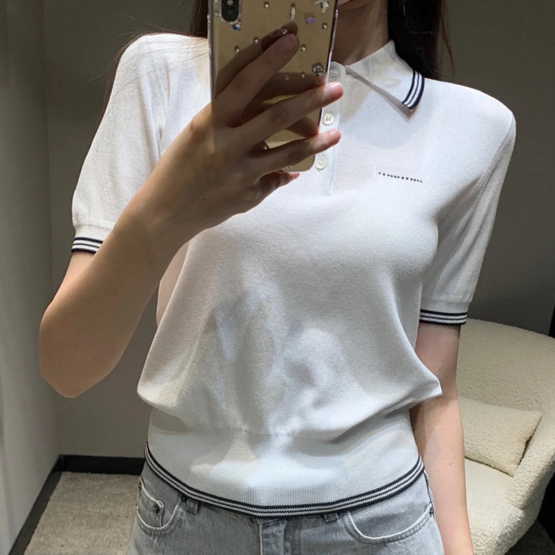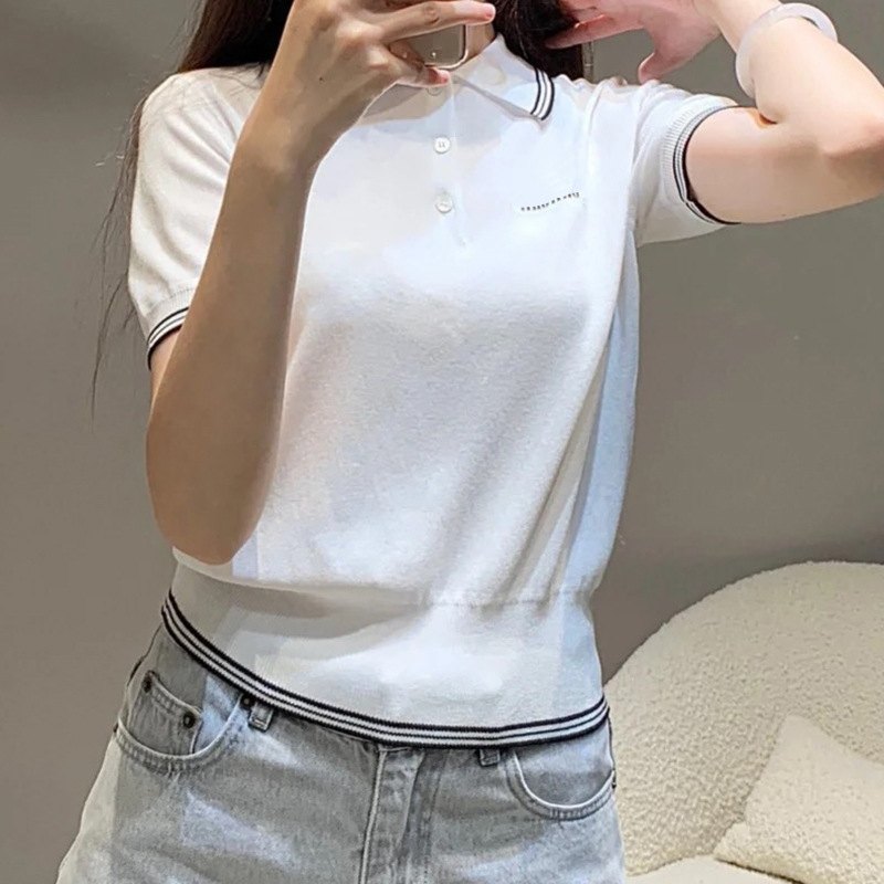 | nameOriginal | High Polo Shirt 2024 Summer New Letter Knitted Short-sleeved T-shirt Short All-match Slim-fit Top |