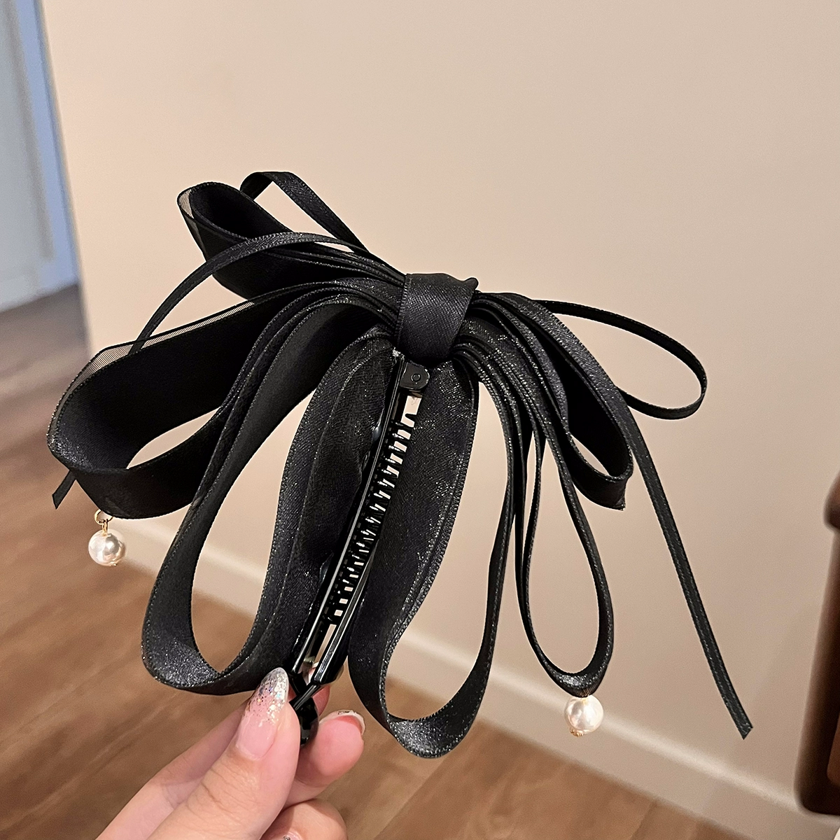 | nameOriginal | High ponytail hairpin with black bow on the back of the head in autumn and winter |