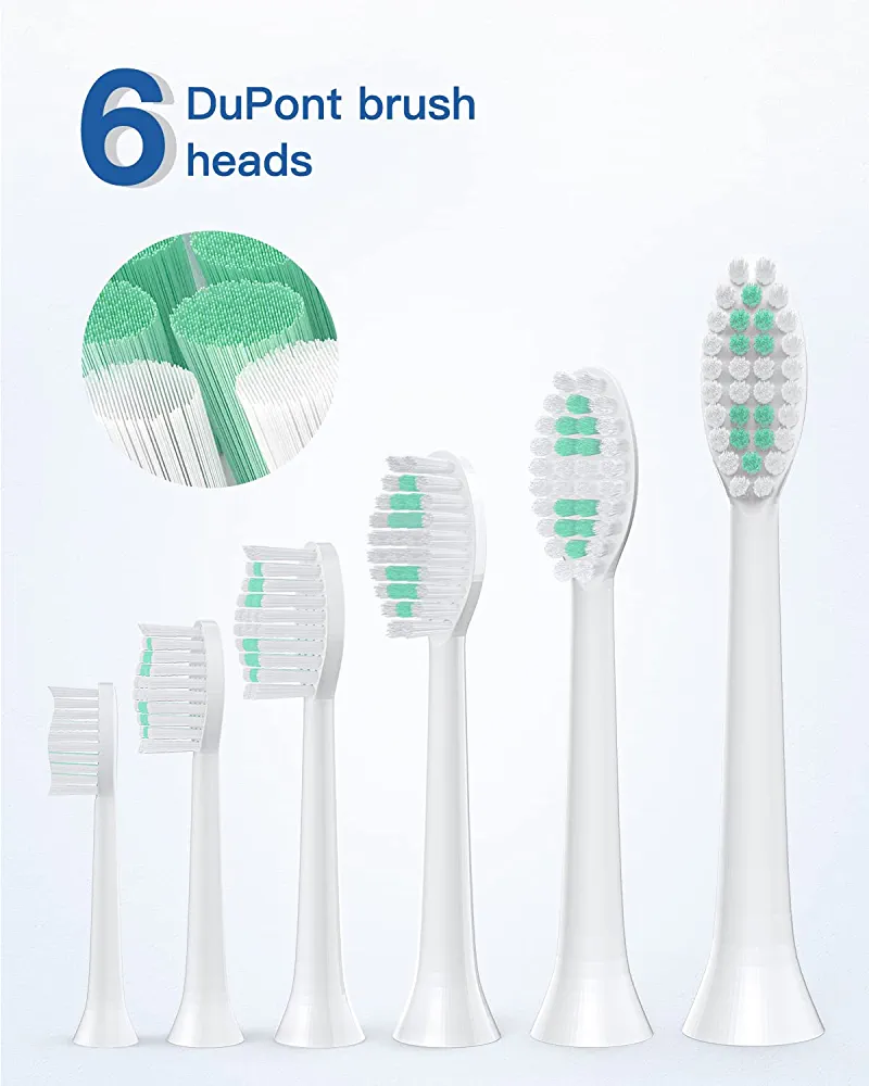 Included in the box are 1 OPERAN Sonic Electric Toothbrush, 6 Dupont brush heads (recommended to replace every 2-3 months), 1 USB cable, 1 USB wireless charger base (not waterproof), and 1 instruction manual. Please note that a wall adapter is not included.