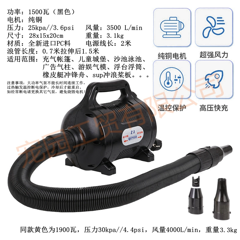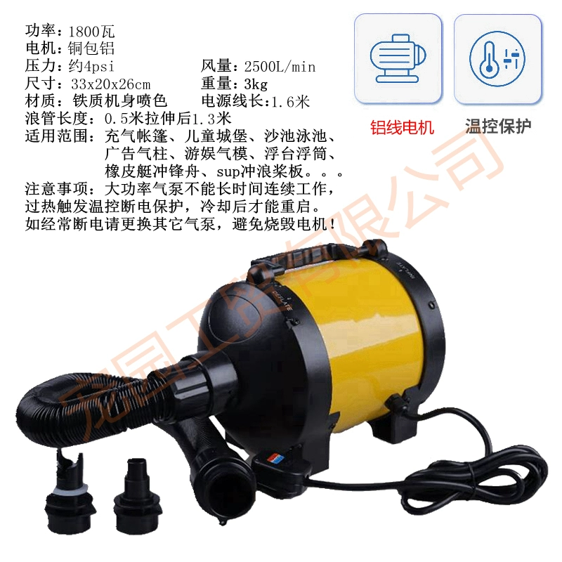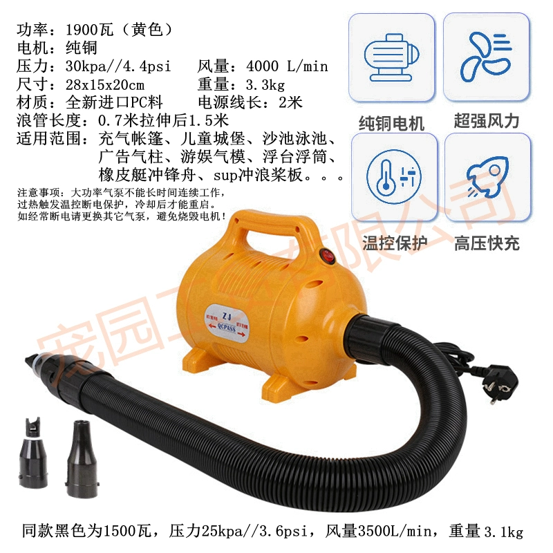 | nameOriginal | High-pressure, high-power inflatable model tent, sand pool, castle, boat, electric air pump, fan, American standard Taiwan |