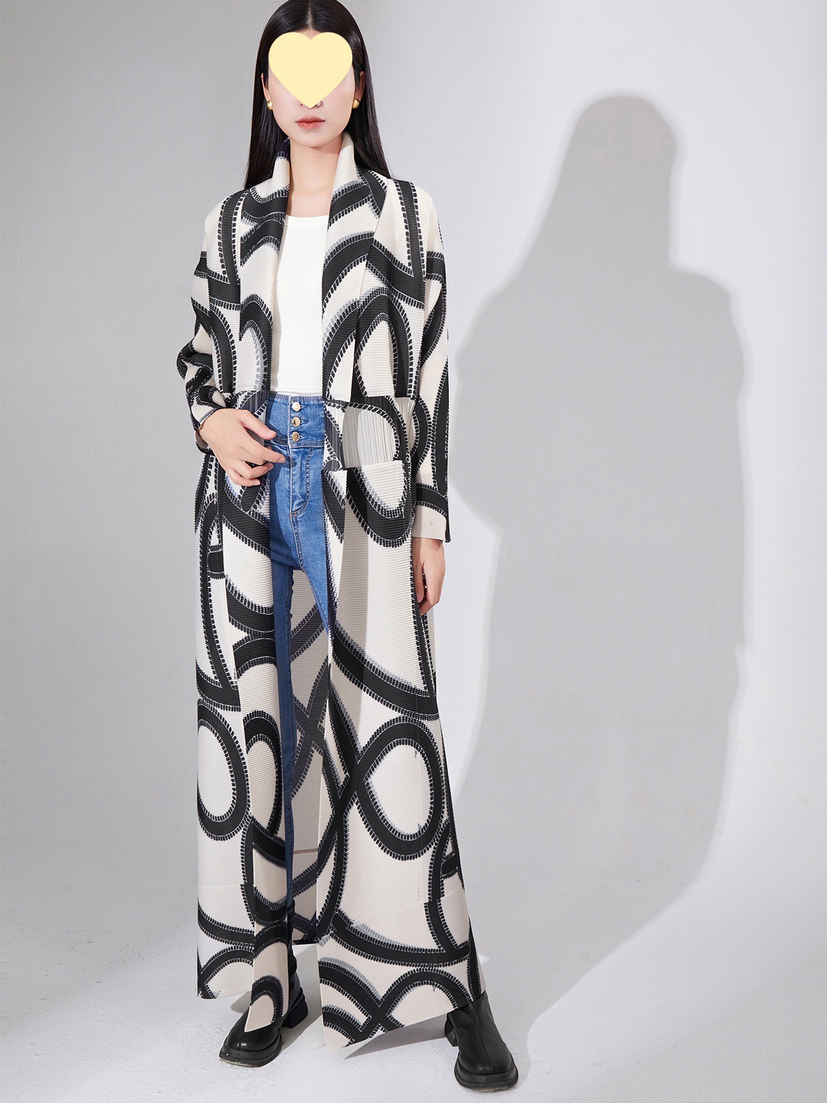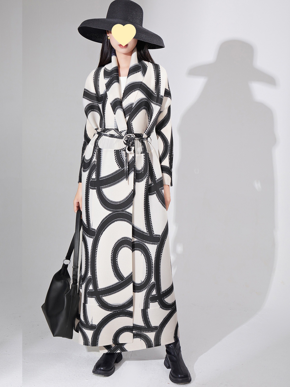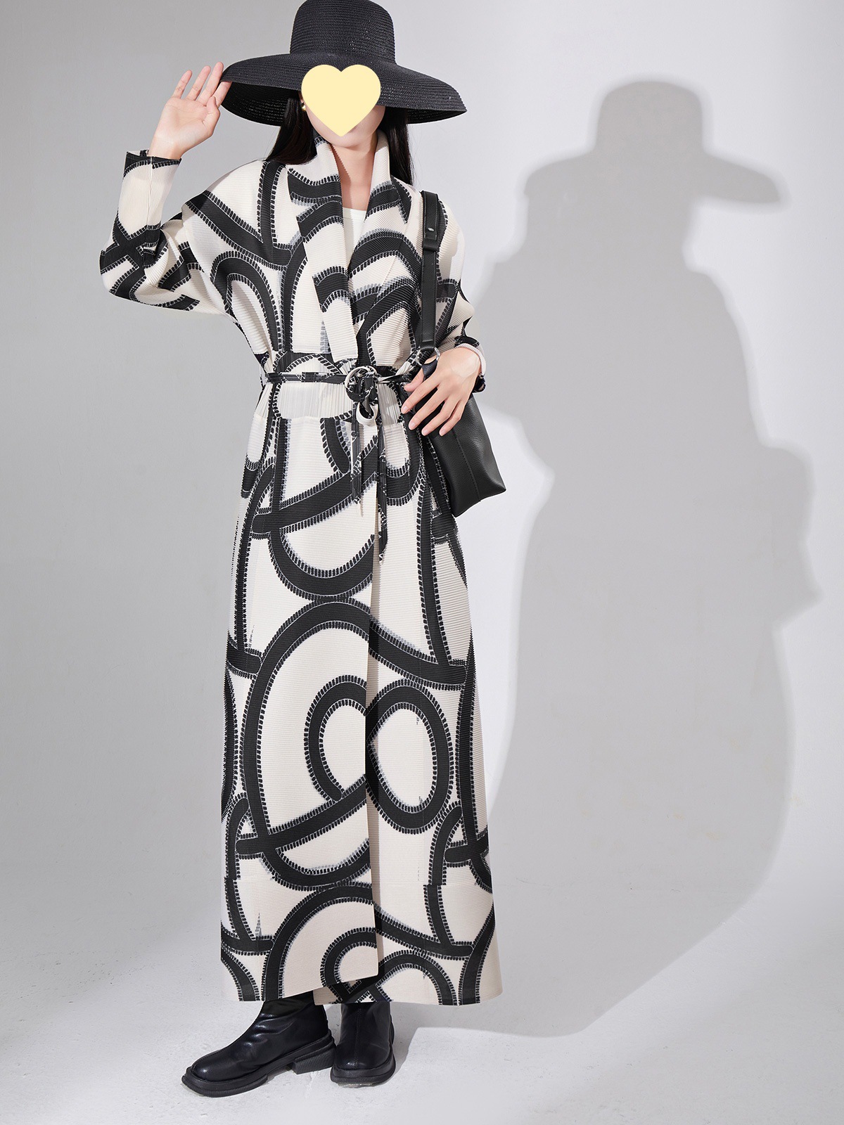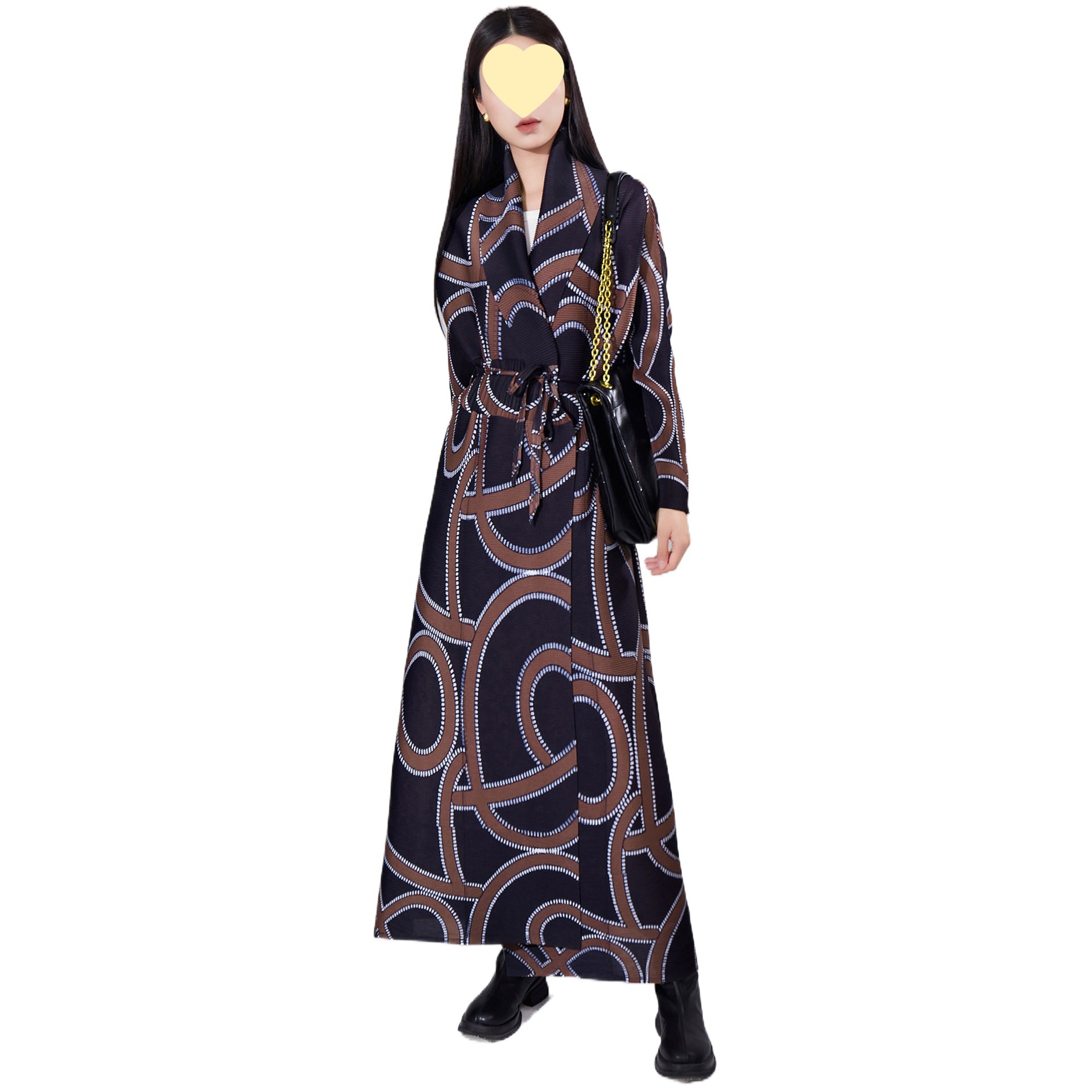 high quality Cross-border Coat Long Coat Women’s Loose Printed Lace-up Lapel Pleated Elegant Coat for Outer