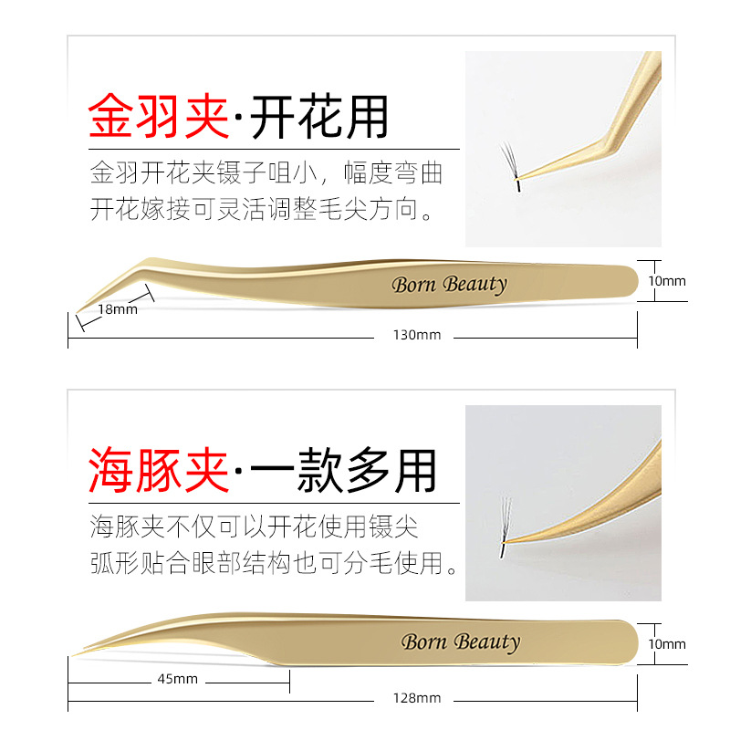 | nameOriginal | High Quality Eyelash Professional Grafting Eyelash Tweezers Tool False Eyelash Blossom Tweezers Golden Feather Dolphin Clip Set |