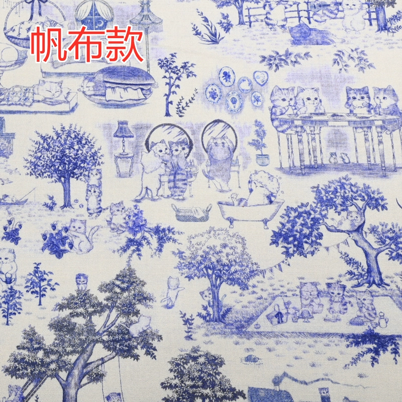 High quality fine canvas retro cat amusement park printed fabric handmade DIY bags pure cotton clothing pure cotton