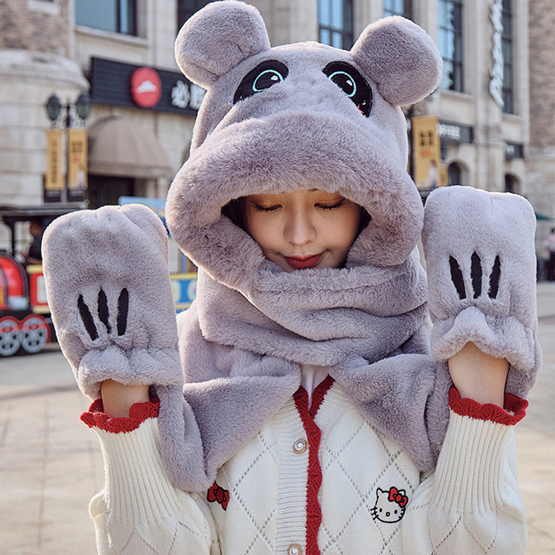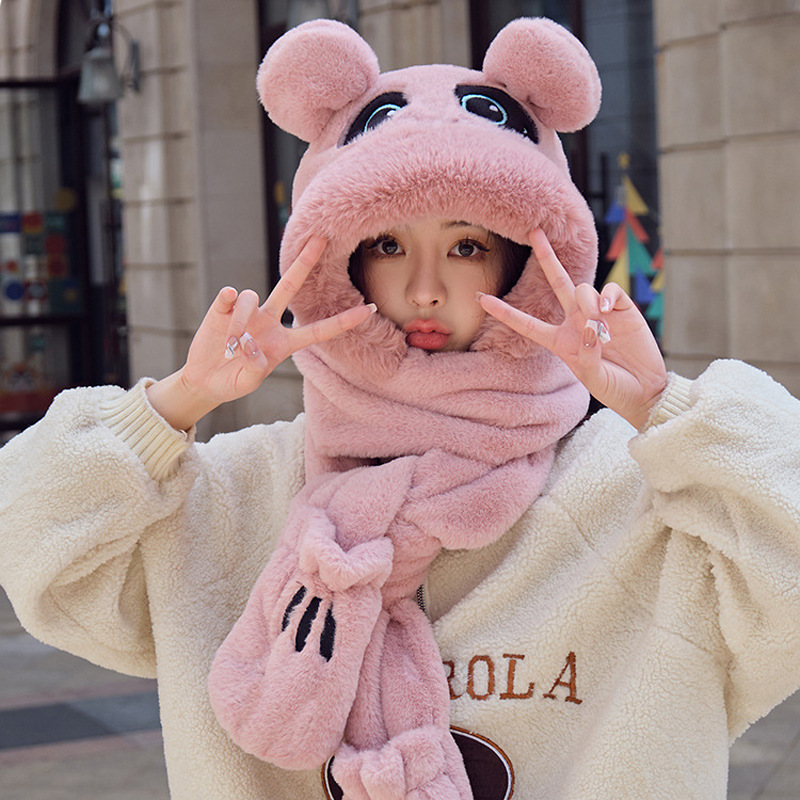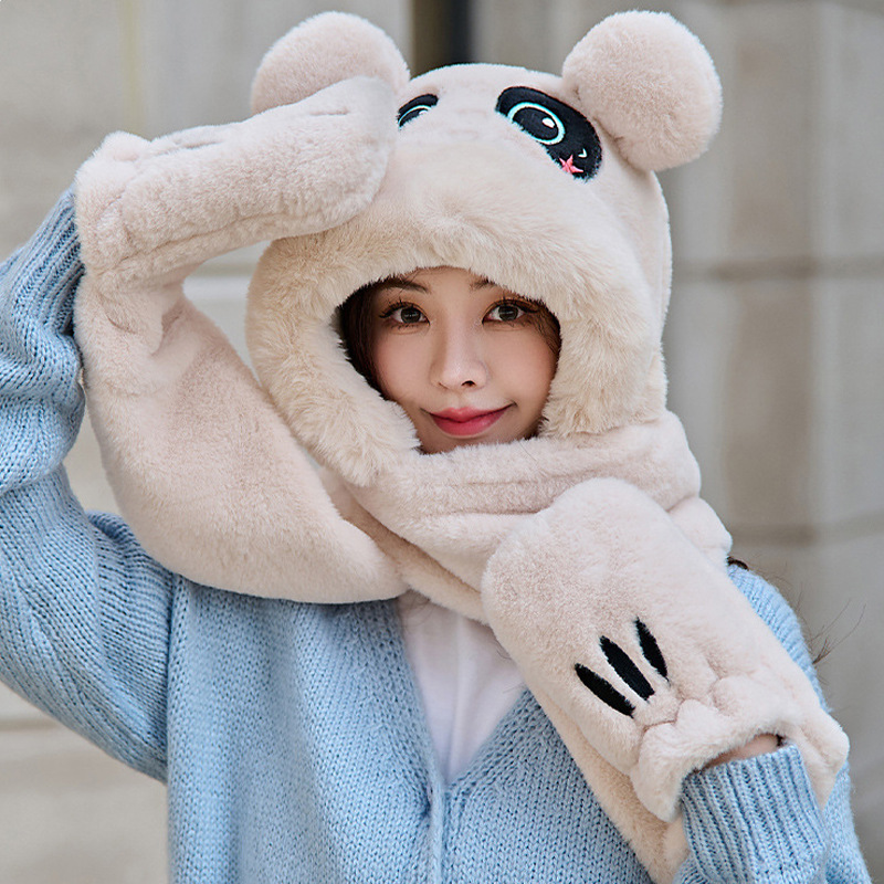 | nameOriginal | High Quality Imitation Rabbit Fur Panda Warm Neck Thickened Plush Scarf Hat Gloves One-piece Cold-proof Ear Protection One-piece Hat |