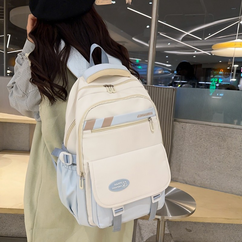 high quality Large Capacity School Bag for Junior High School Students Women's Multi-Layer Contrast Color Light Backpack for Primary School Students for Grade 3 to 6