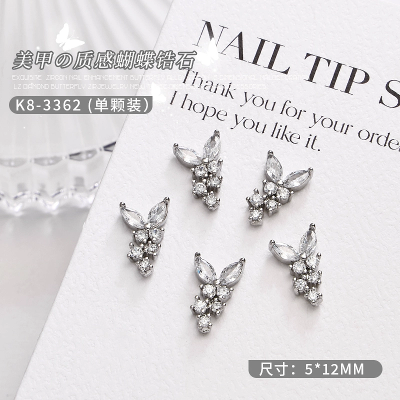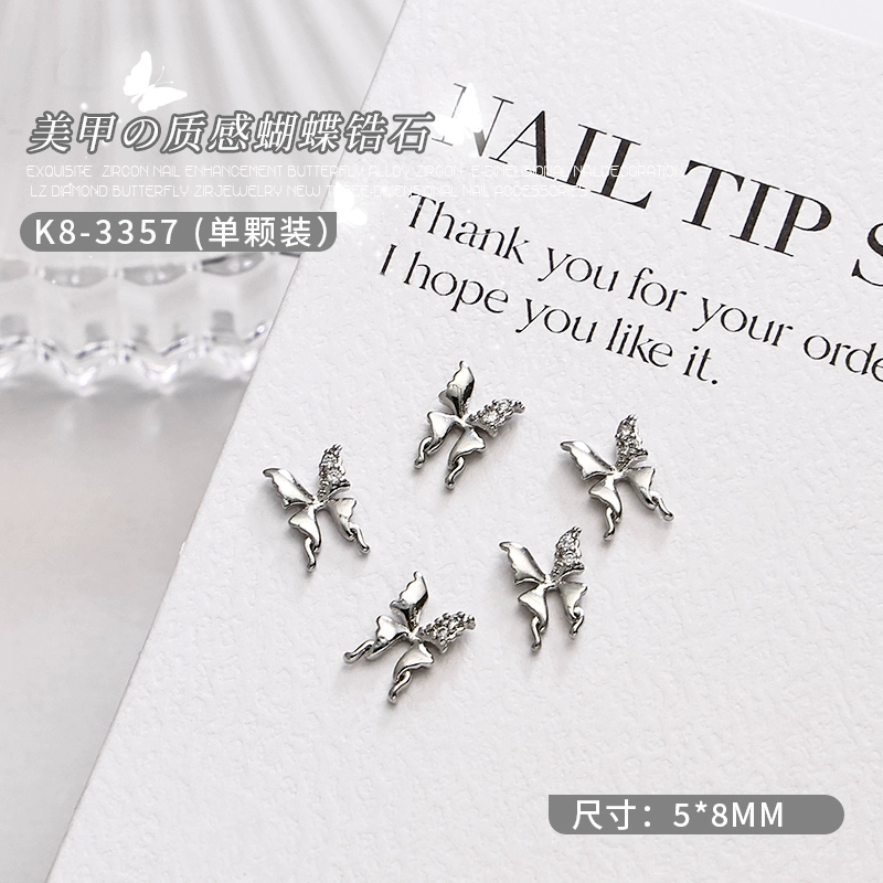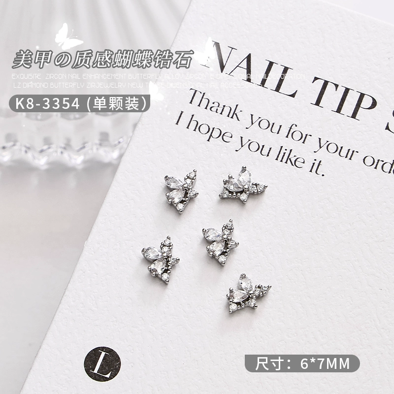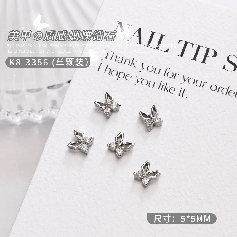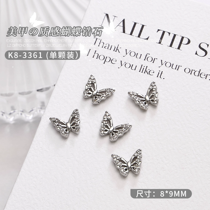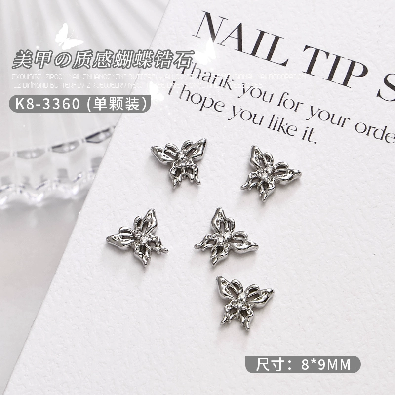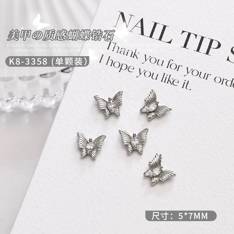 | nameOriginal | High-quality mini butterfly zircon nail art jewelry new light luxury retro silver small diamond nail decoration color preservation |
