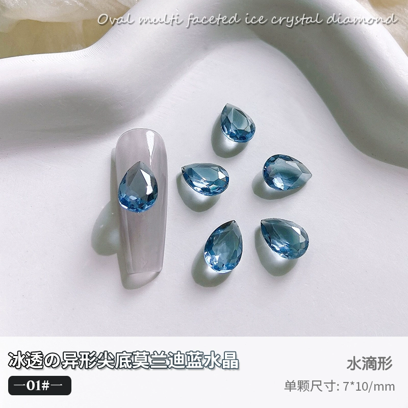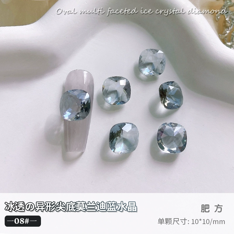 | nameOriginal | High quality sea blue transparent diamond new nail art jewelry Morandi transparent crystal super flash multi-faceted sharp bottom diamond fat square |