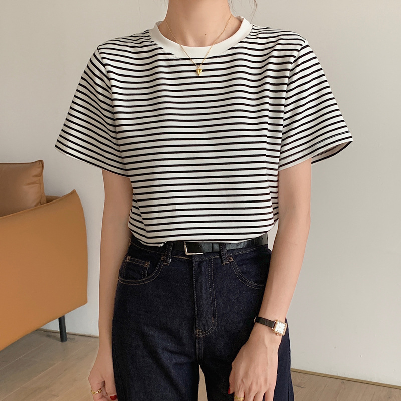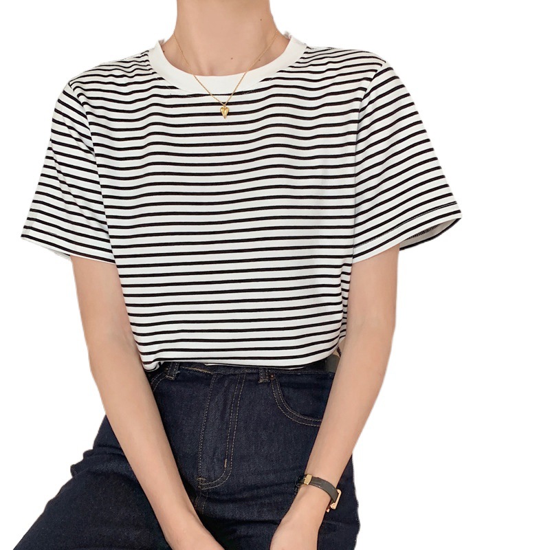 | nameOriginal | High Quality Striped T-Shirt Base Shirt Women's Short-sleeved 2024 Summer New Loose Slimming All-match Round Neck Top |