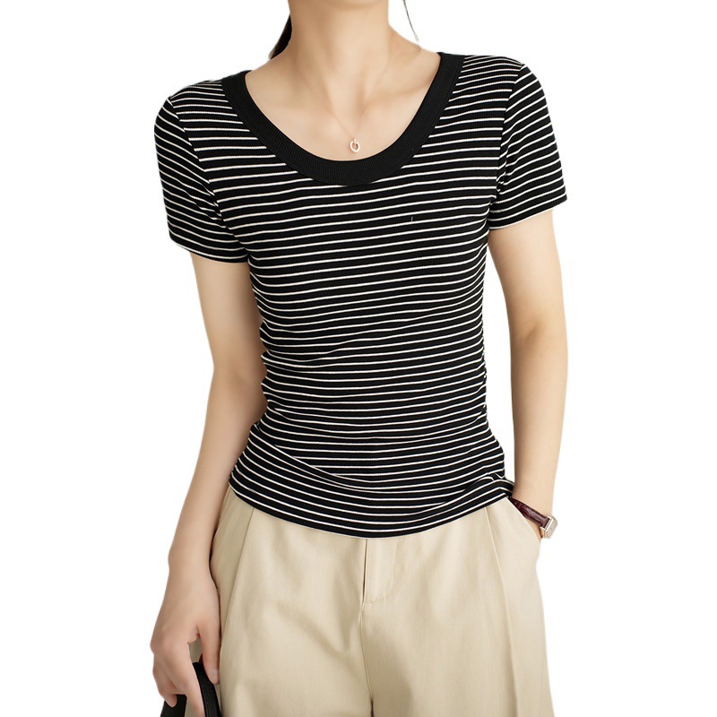 | nameOriginal | high quality Striped T-shirt Women's Cotton 2024 Summer New Slim-fit Slimming All-match Round Neck Short-sleeved Top Base Shirt |