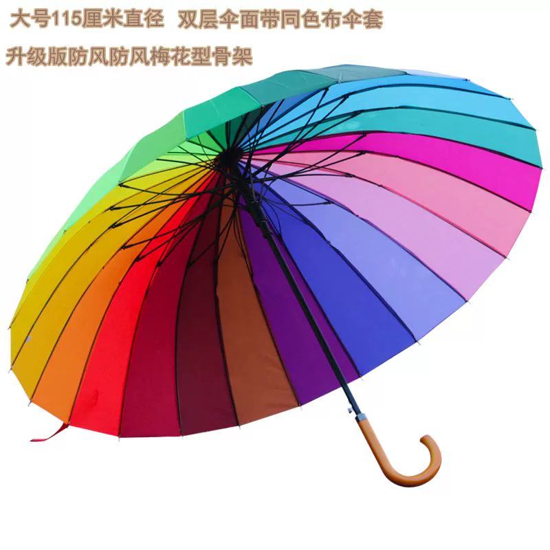 High-quality wind-resistant 24-rib automatic colorful sun umbrella with long handle