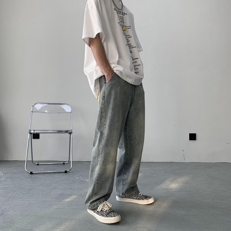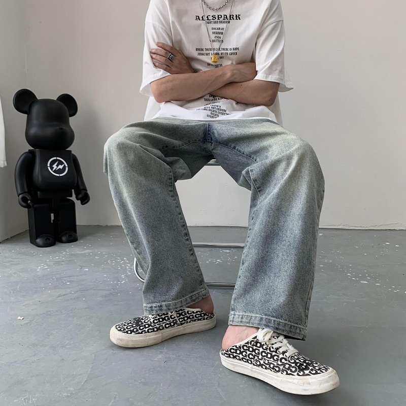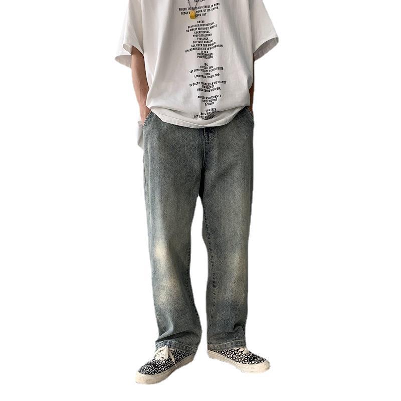 High Street Bf Style Jeans Men's Summer Loose Ins Straight Casual Pants Fashionable Thin Wide Leg Trousers for Men