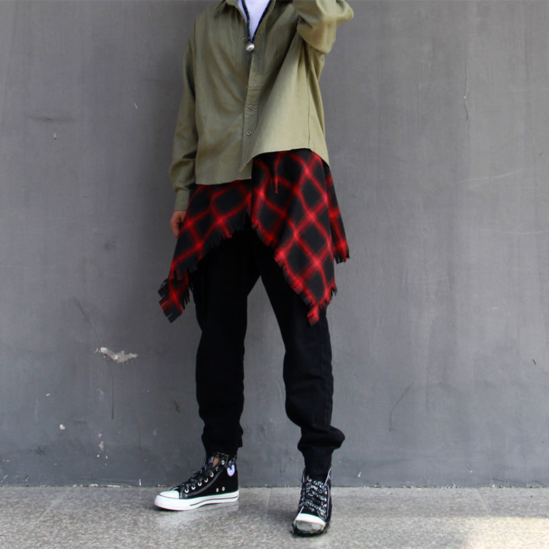 | nameOriginal | High Street Hem Lace-up Waist Punk Hip-hop Hem Layered Fake Shirt Plaid Waist Cover Accessories Skirt for Men and Women |