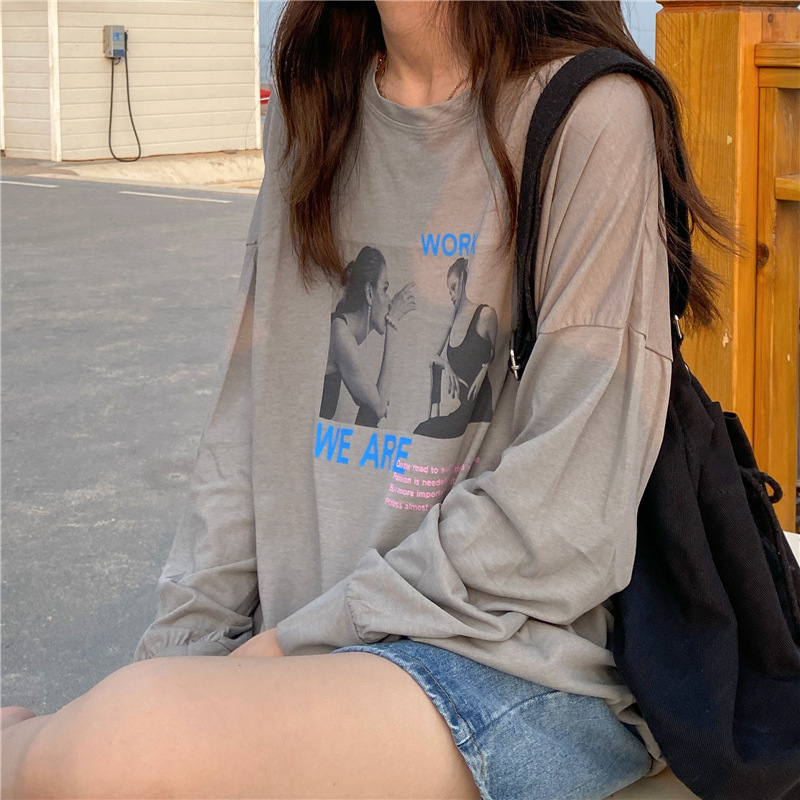 High Street hiphop Sweatshirt Women’s Spring and Autumn Loose Korean Ins Harajuku Style Bf Thin American Style Retro Early Autumn Jacket