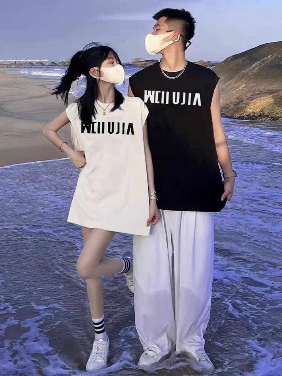 | nameOriginal | High street vibe cotton round neck sleeveless T-shirt top women's summer oversize loose sports vest couple wear |