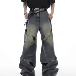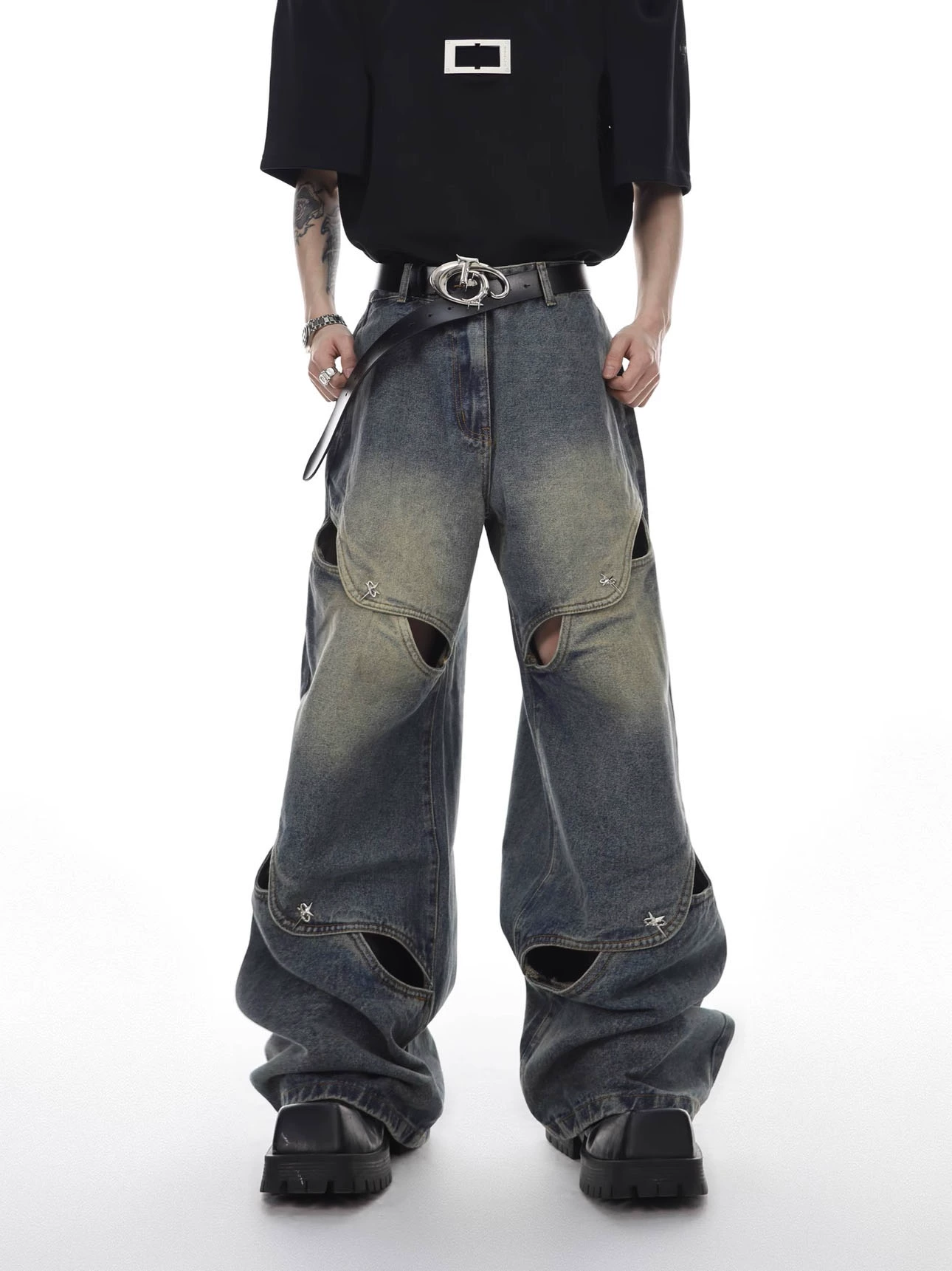 | nameOriginal | High street vibe deconstructed metal button design wide-leg retro jeans heavy industry hollow loose straight pants for men and women |