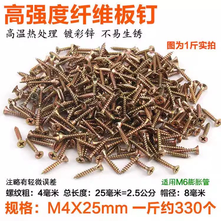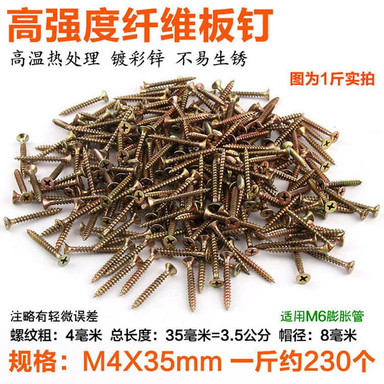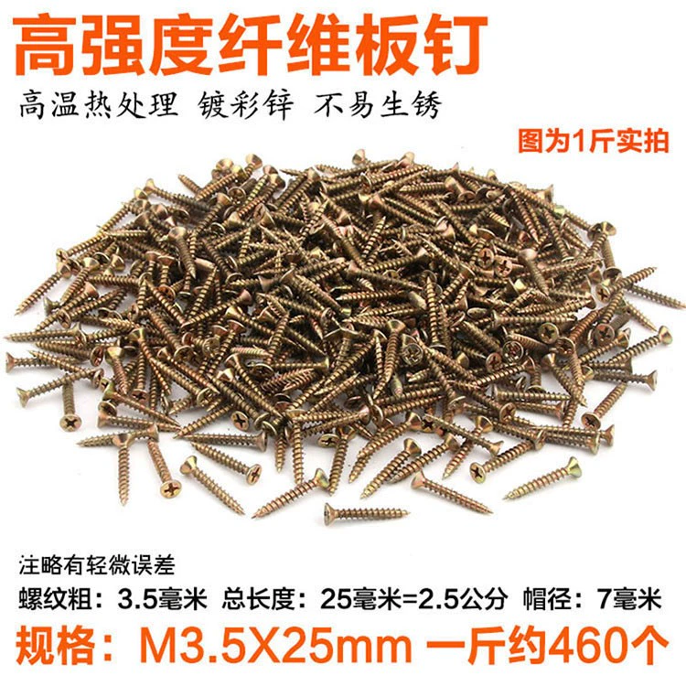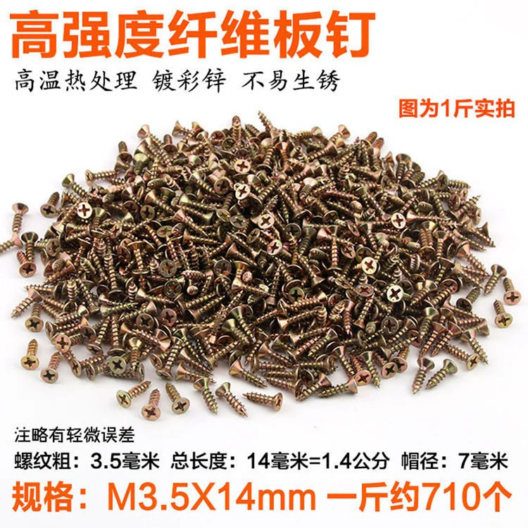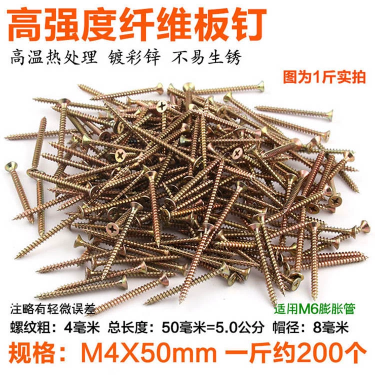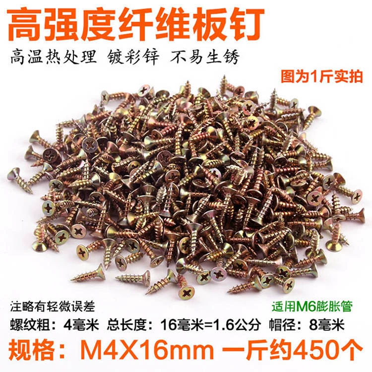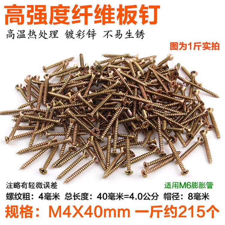 High-strength fiberboard nails self-tapping screws yellow color zinc drywall cross countersunk head solid wood plus hard wall board nails