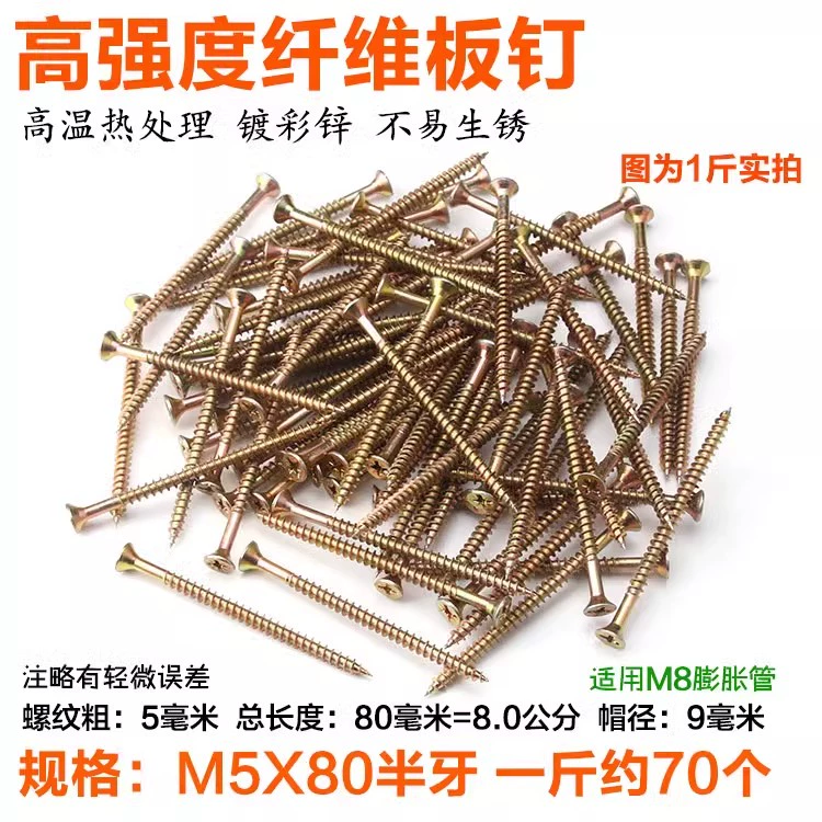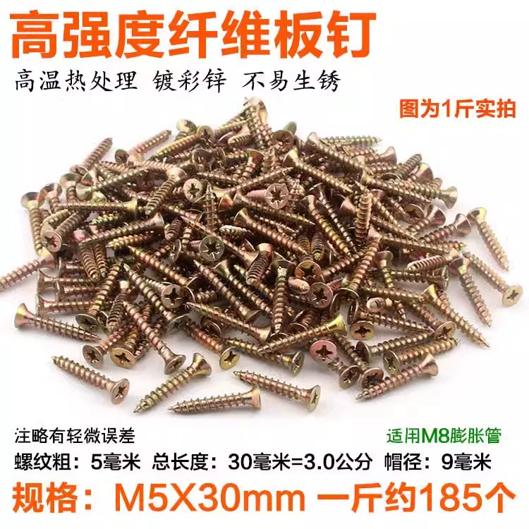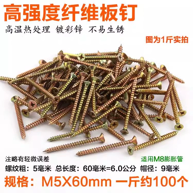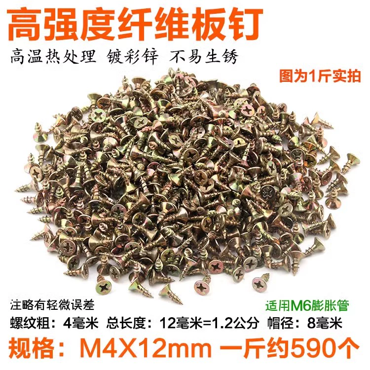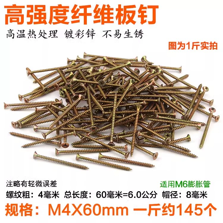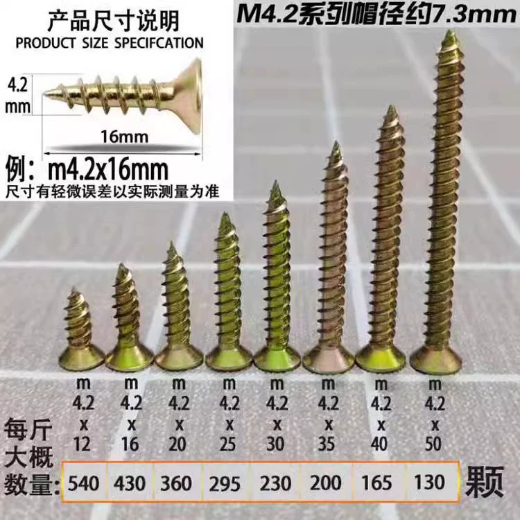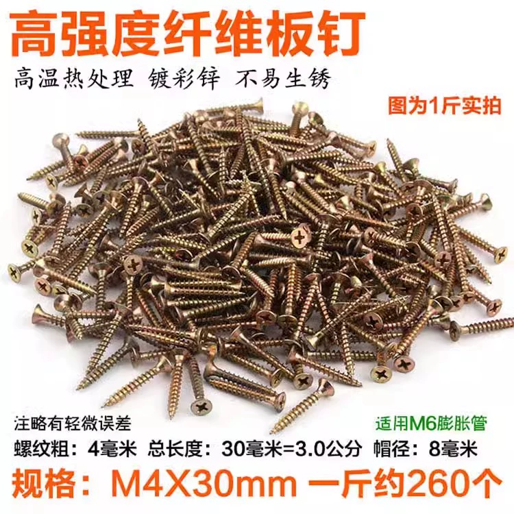 High-strength fiberboard nails self-tapping screws yellow color zinc drywall cross countersunk head solid wood plus hard wall board nails