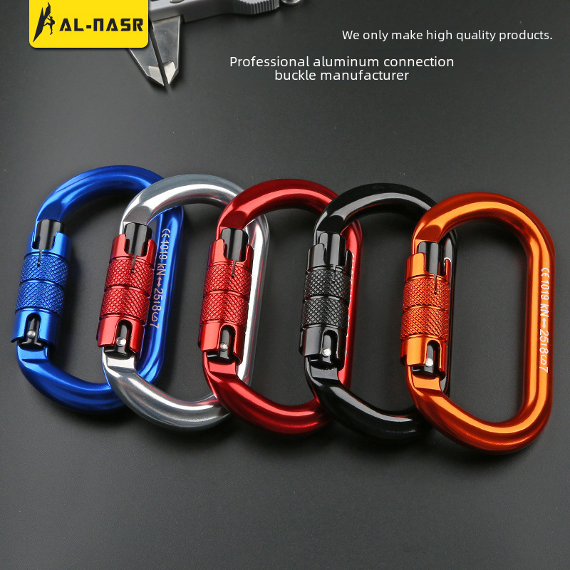 | nameOriginal | High strength outdoor rock climbing climbing main lock aviation aluminum safety buckle downhill equipment aluminum alloy mountaineering buckle |