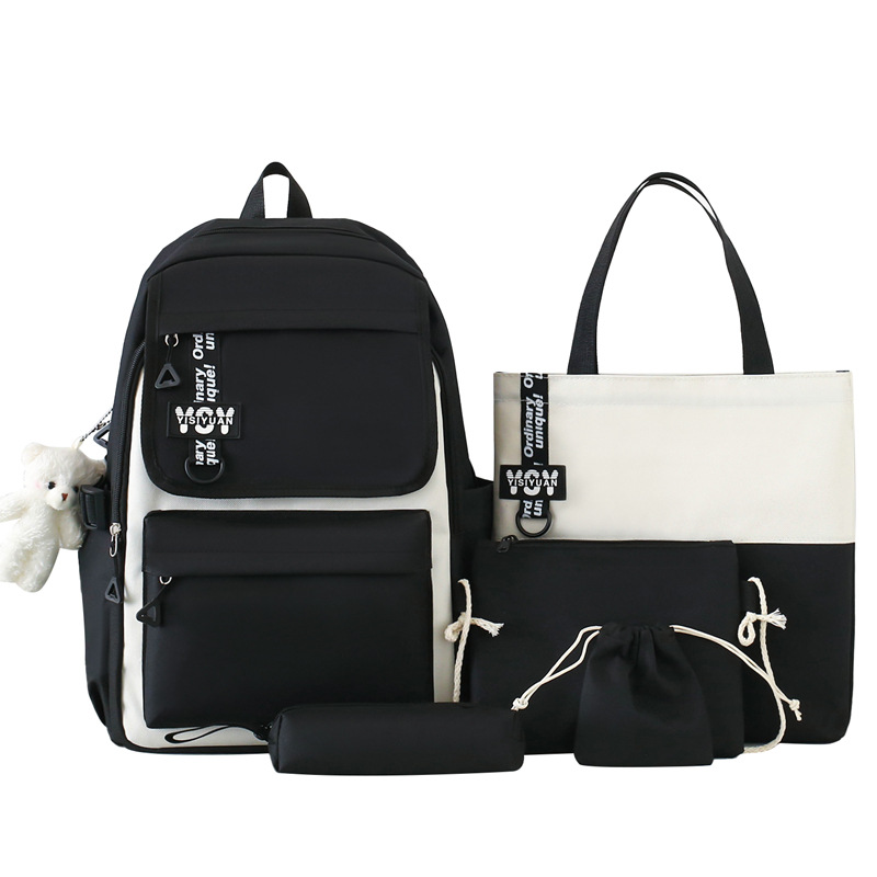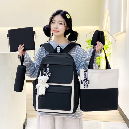 High-value Backpack All-match Senior high school Ins Simple Campus Backpack Five-piece Set Schoolbag for Junior High School Students Women’s Large Capacity