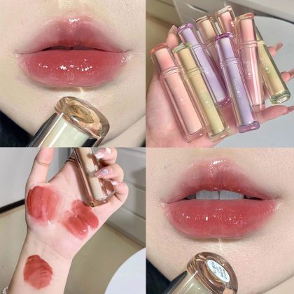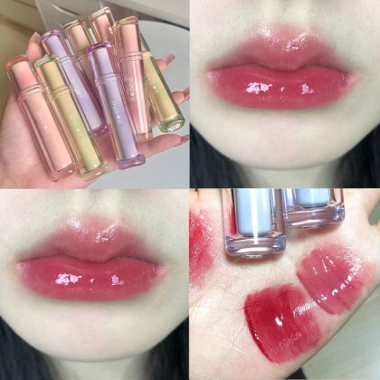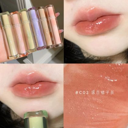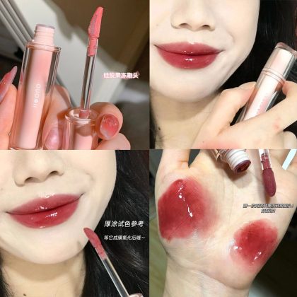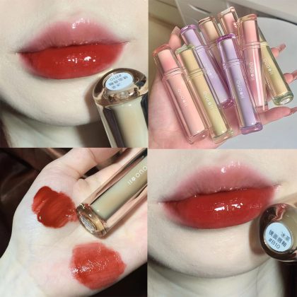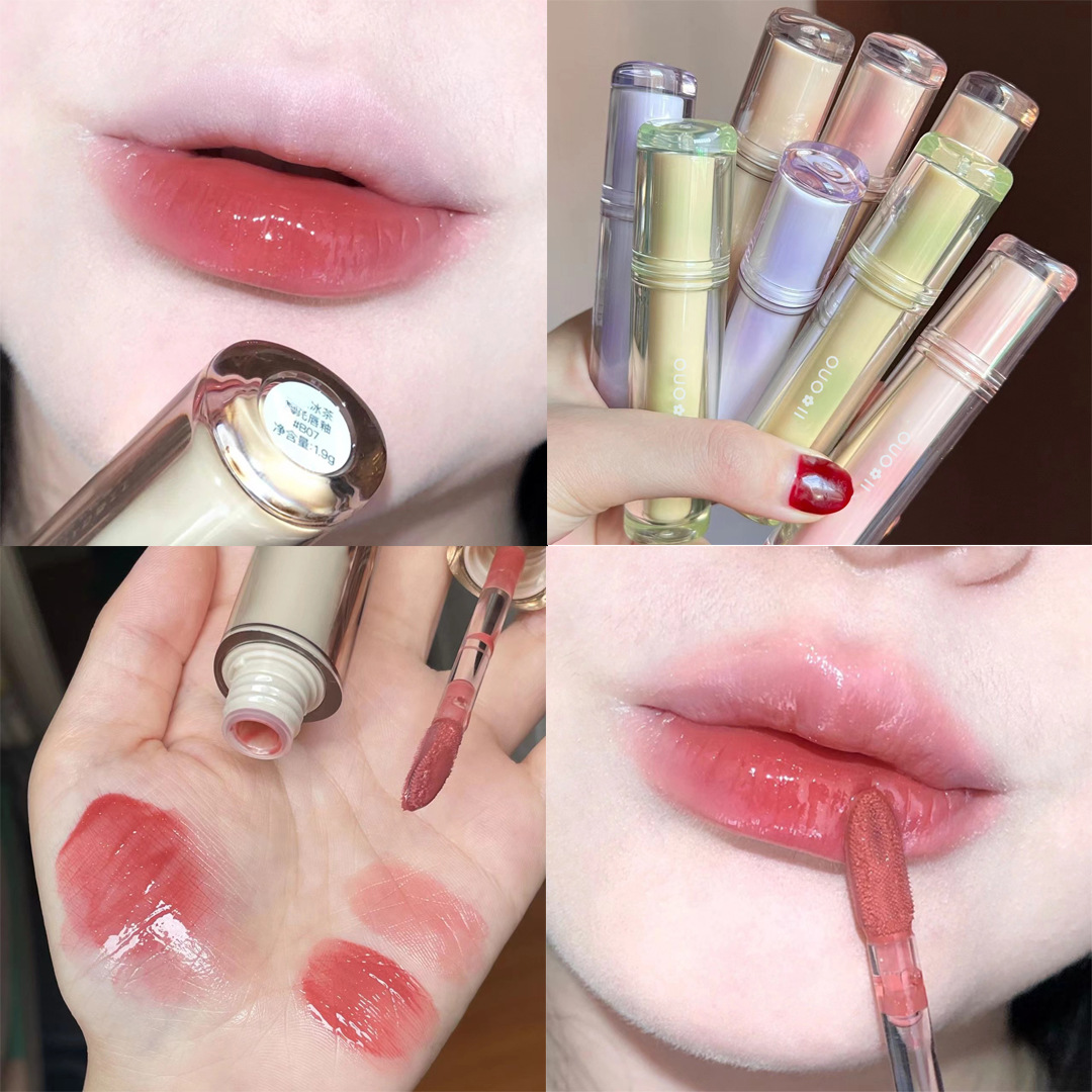 High-value Iced Tea Ryukyu Light Mirror Water Lip Glaze Doodle Lip Lipstick Female Student Lip Gloss Lip Honey Lasting No Fading