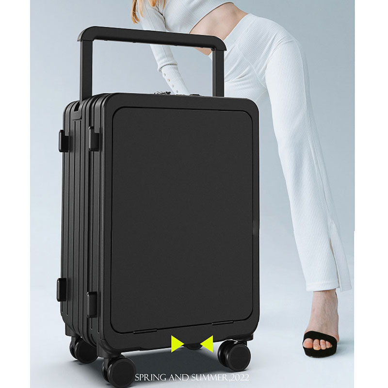 High-value ins Luggage Case Women's Front Open Lid Wide Trolley Case 20-inch Business Loanbox Large Capacity Travel Case