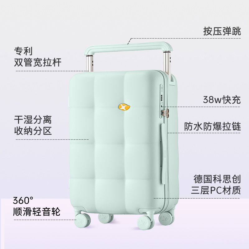 | nameOriginal | High-value luggage customized PC mid-set wide pull rod luggage 20-inch ultra-light boarding box password trolley case |