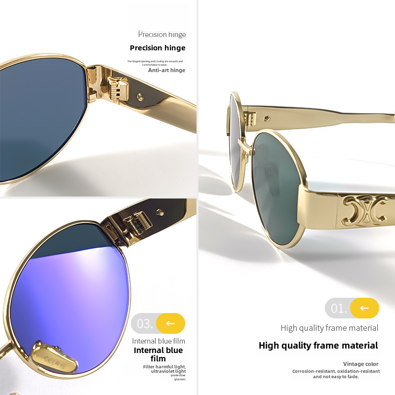 High version Arc de Triomphe sunglasses women's net red same style metal small frame retro personalized sunglasses 40235 Oval
