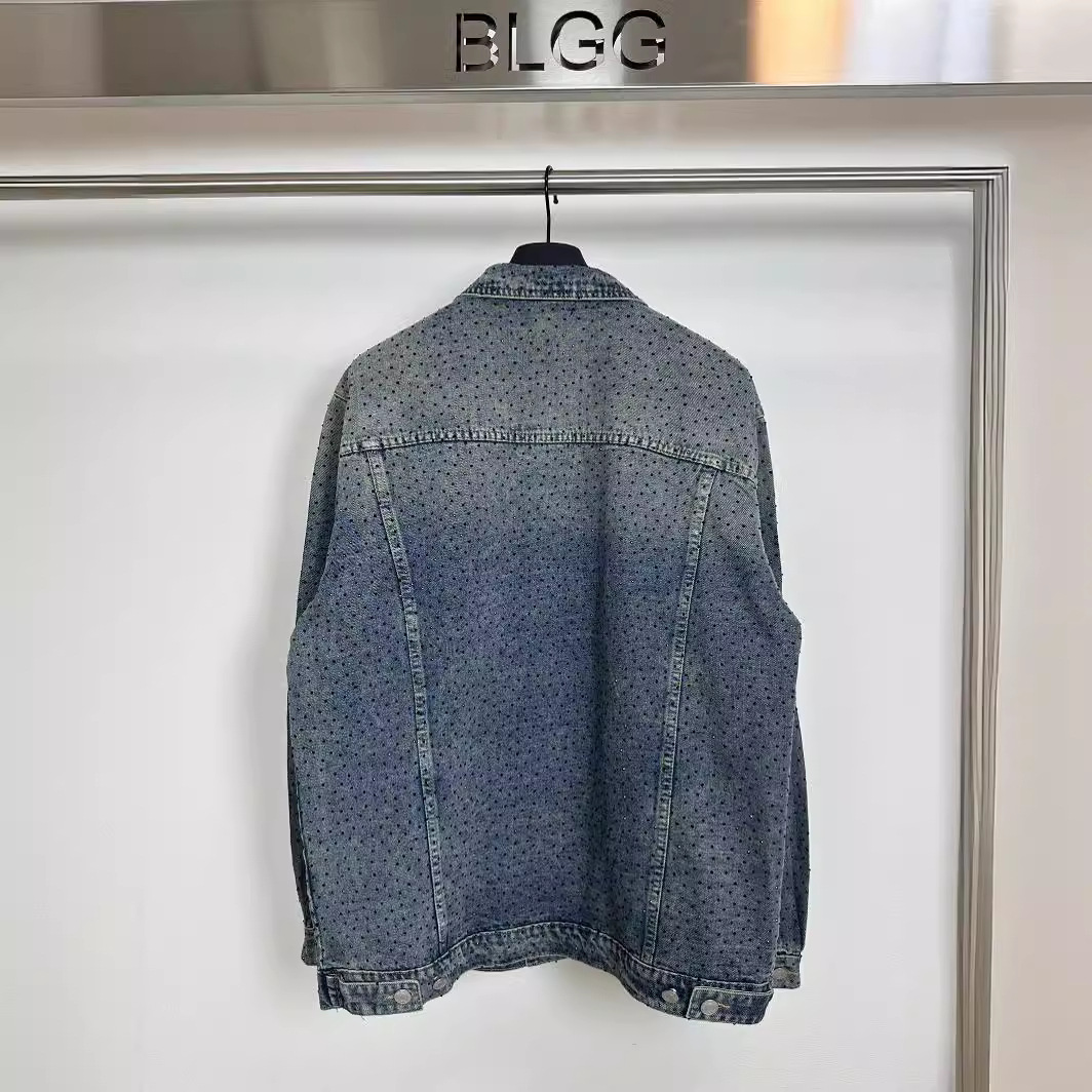| nameOriginal | High version Big goods Paris B simple logo distressed expensive flash diamond high luxury high-end Korean style Denim cardigan coat |