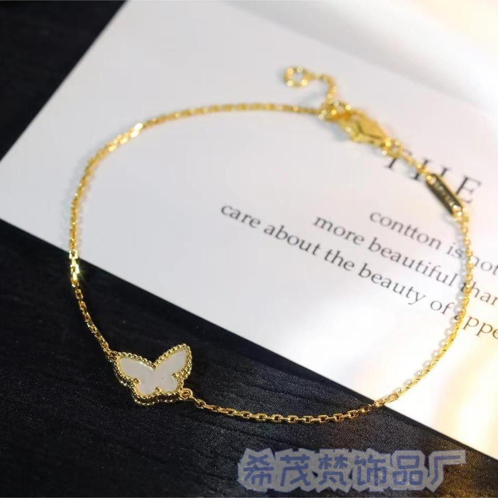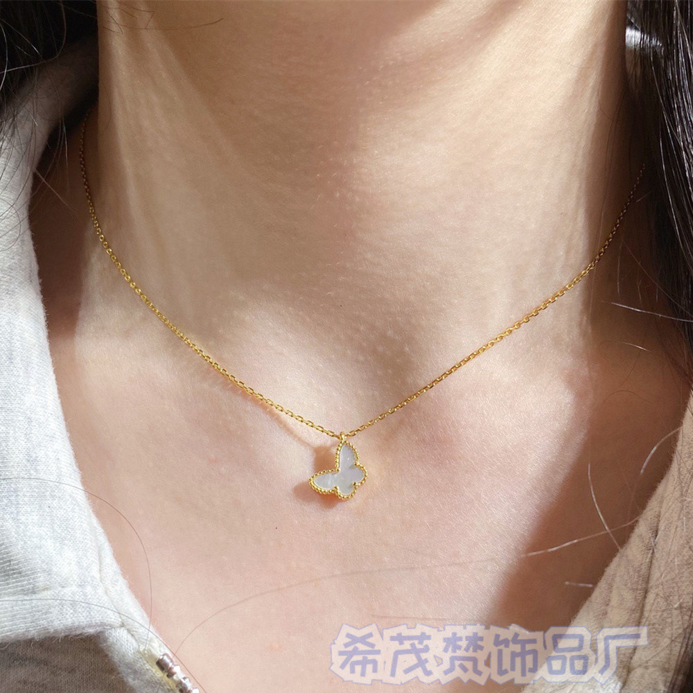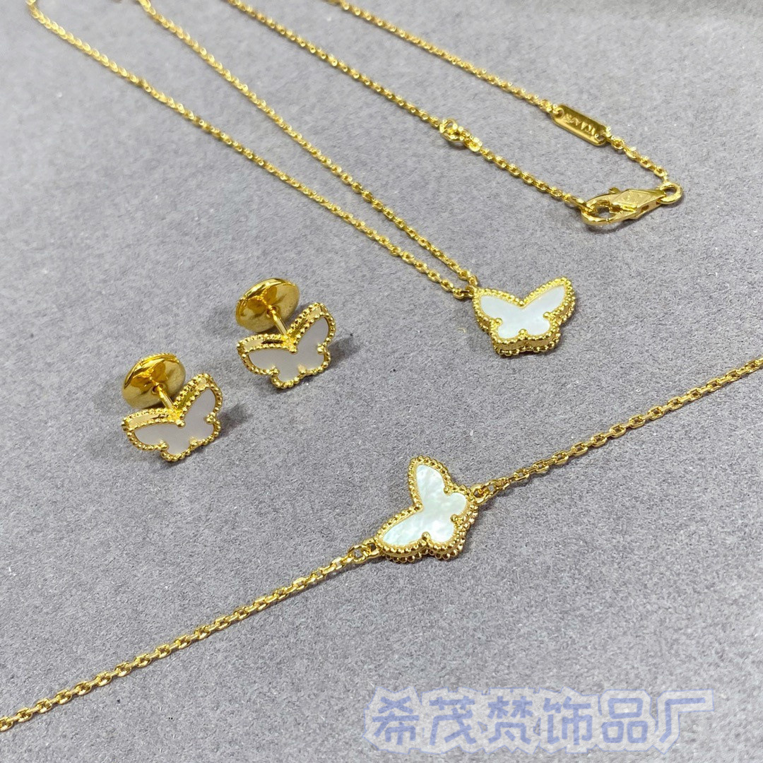 | nameOriginal | High version mini butterfly S925 sterling silver four-leaf clover necklace natural white fritillary bracelet earring necklace three-piece set |