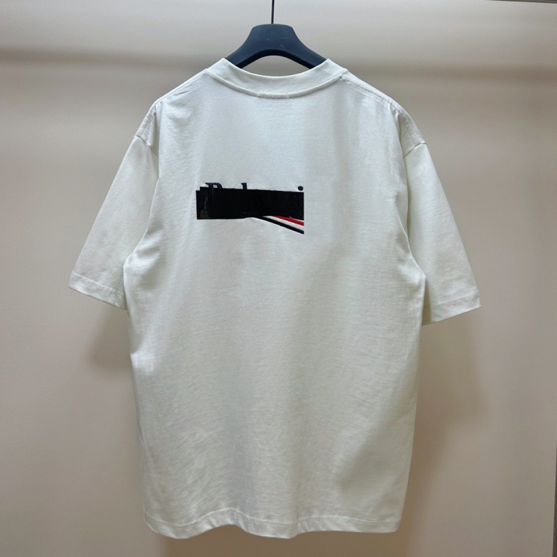 | nameOriginal | High version Paris 24 spring and summer new cola black glue wave logo label pressure glue embroidery B home correct short sleeve t-shirt |
