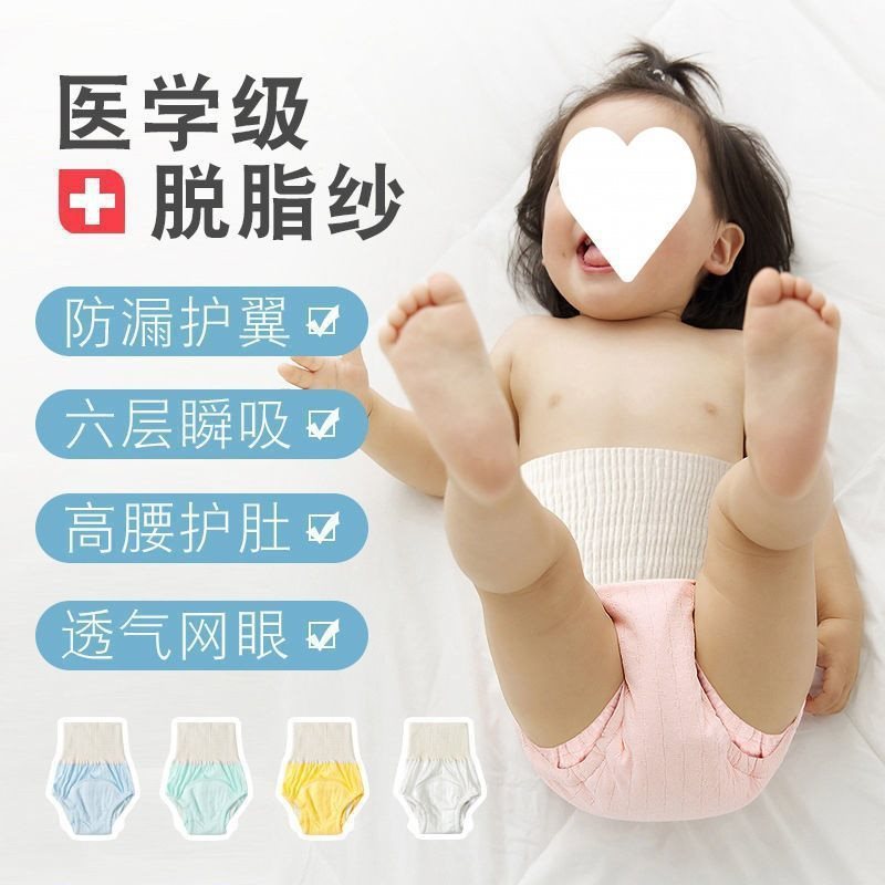 High Waist Belly Protectors Baby Toilet Training Pants Children's Gauze Urine-proof Pants