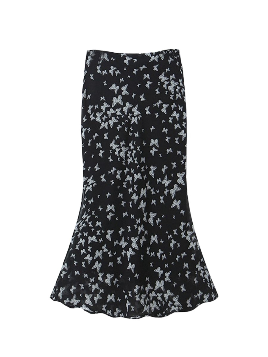 High Waist Butterfly Printed Chiffon Mid-Length Skirt 8852 plus size Retro High Waist Hip Printed Skirt