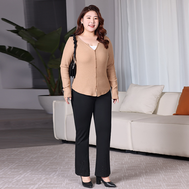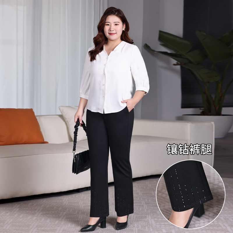 | nameOriginal | High Waist Casual Pants Women's Spring New Fat Stretch Wide Leg Pants Fashion Hot Drilling Horn Pants plus size Women's Clothing |